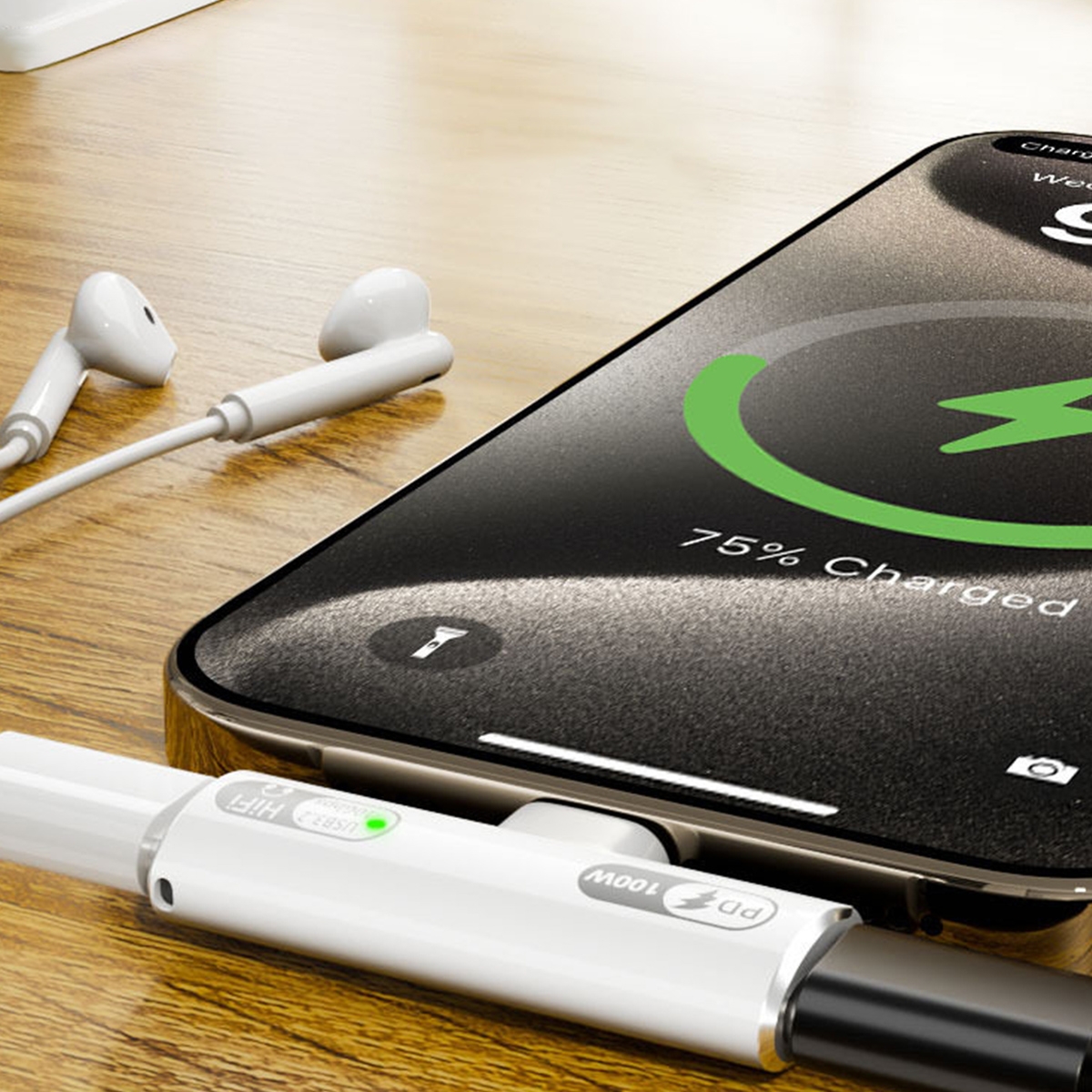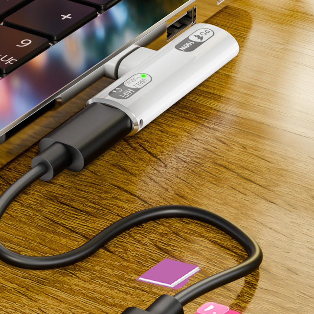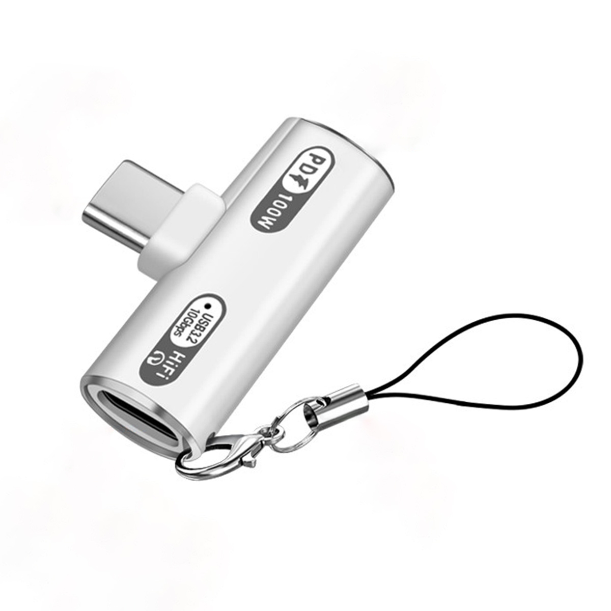 2-in-1 Dual USB-C Splitter Adapter - 100W PD Fast Charge and 10Gbps Data Sync HiFi Audio Converter, White