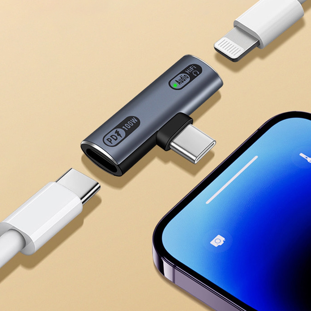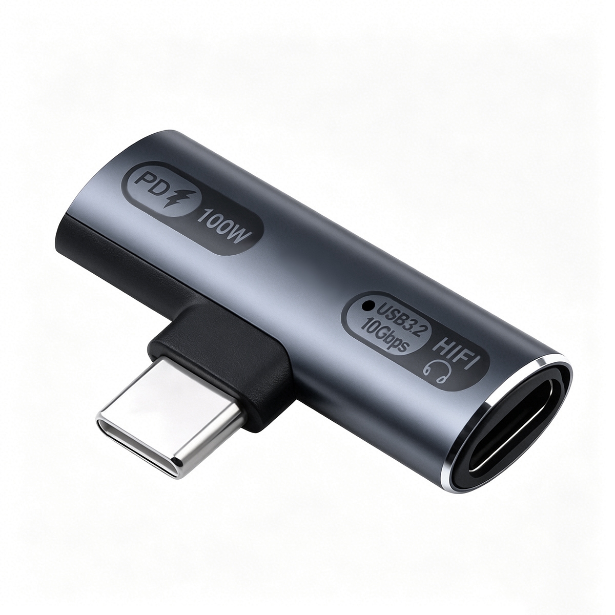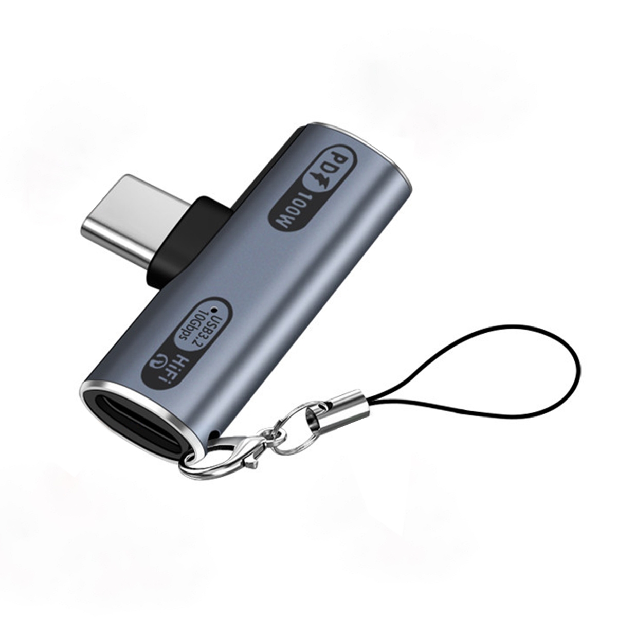 2-in-1 Dual USB-C Splitter Adapter - 100W PD Fast Charge and 10Gbps Data Sync HiFi Audio Converter, Gray