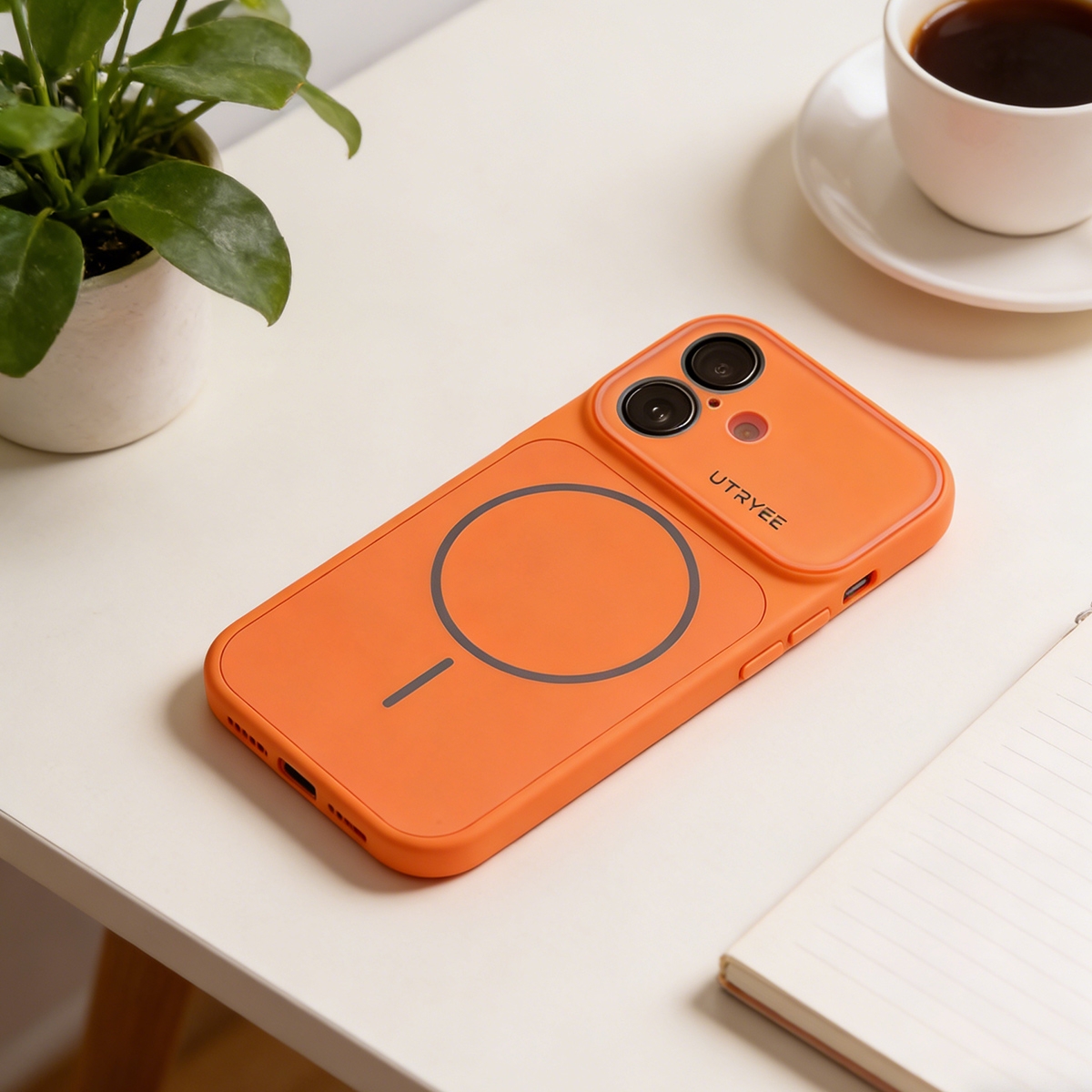 2-in-1 Shockproof Magnetic Phone Case for iPhone 17 - Minimalist Design, Orange