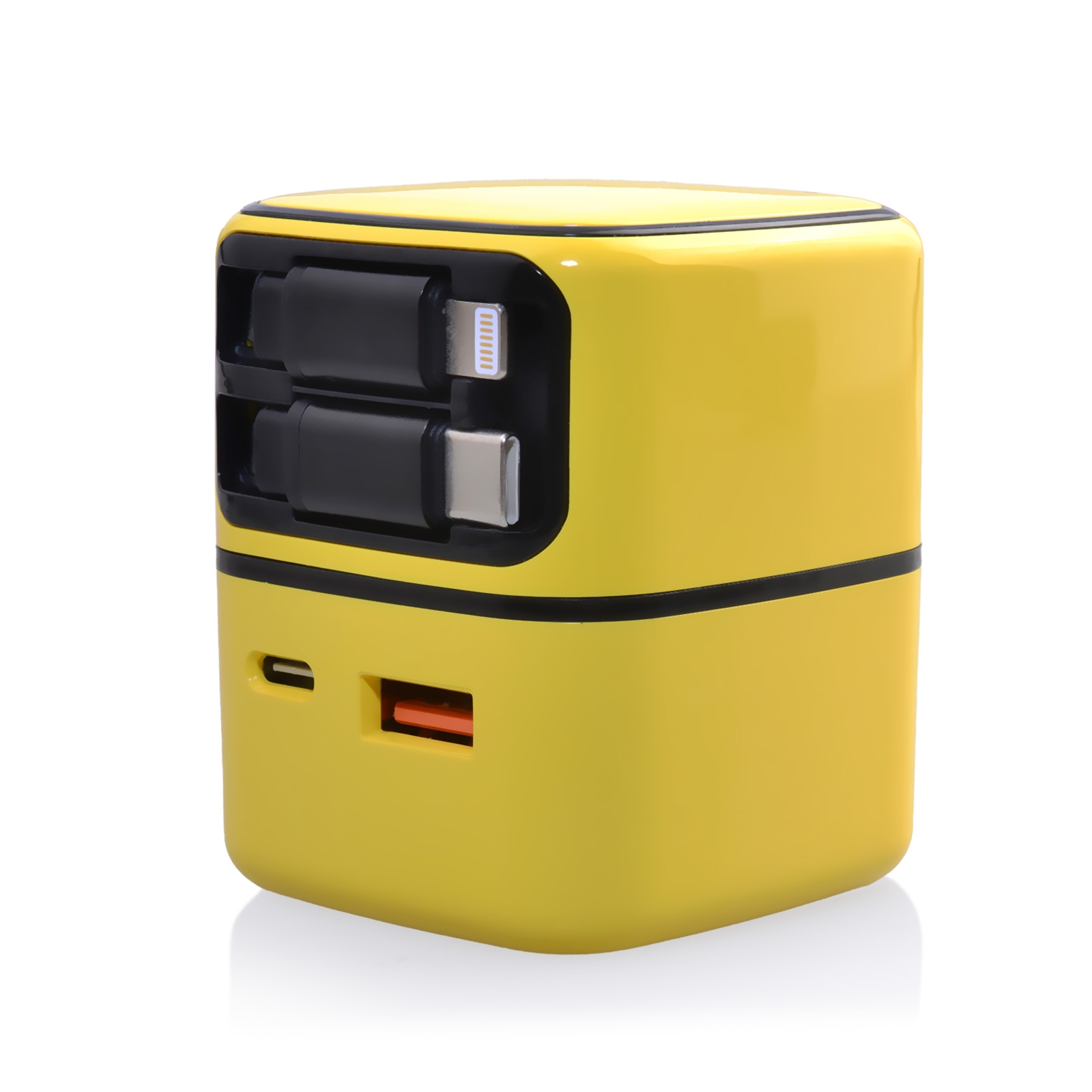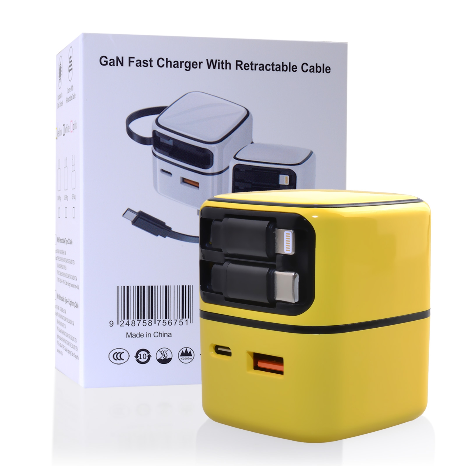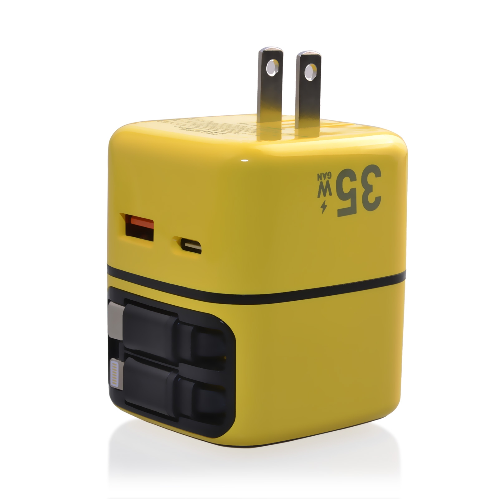 35W GaN Charger with Dual Retractable Cables - Yellow