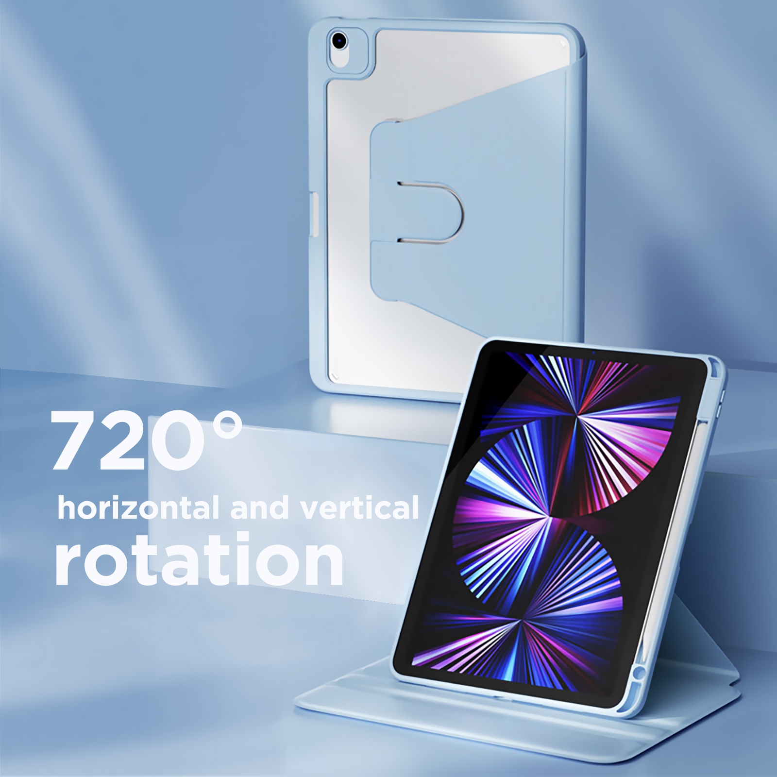 360° Rotating iPad Case with Pencil Holder for iPad 10th/11th Gen, Light Blue