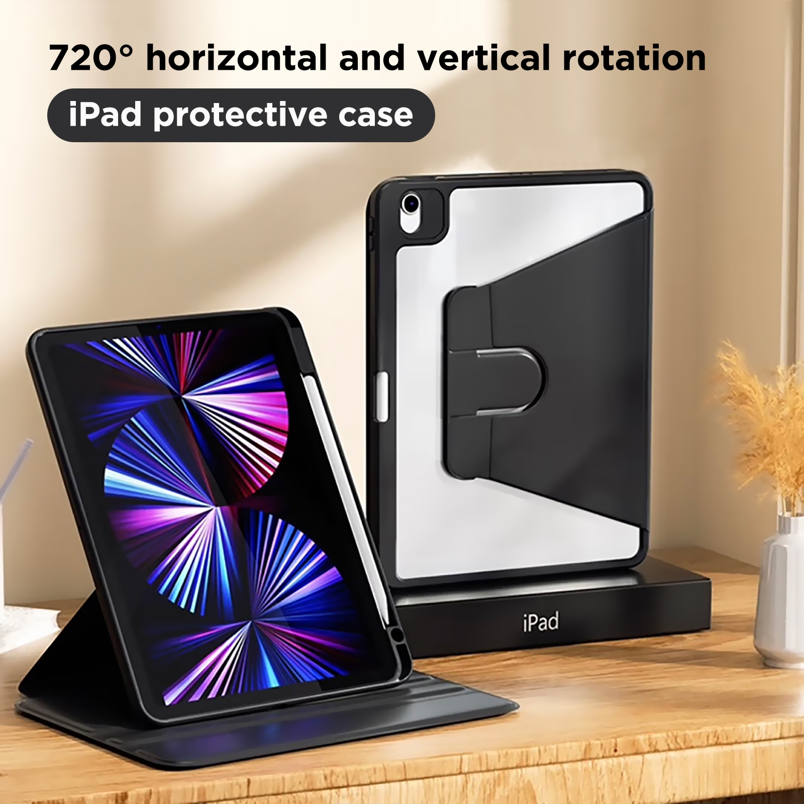 360° Rotating iPad Case with Pencil Holder for iPad Pro 2024/2025 11 Inch, Black