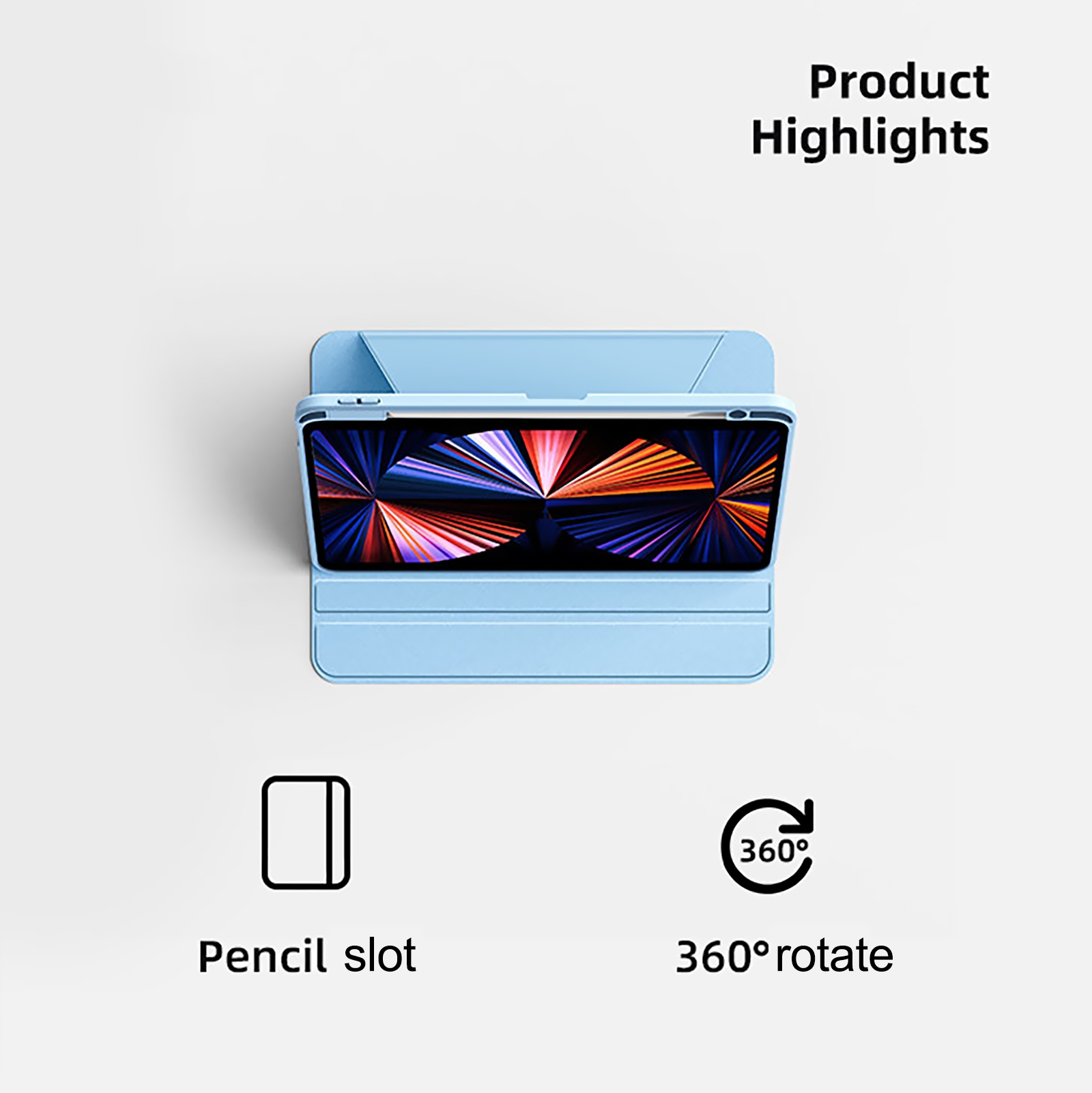 360° Rotating iPad Case with Pencil Holder for iPad Pro 2024 11 Inch, Light Blue