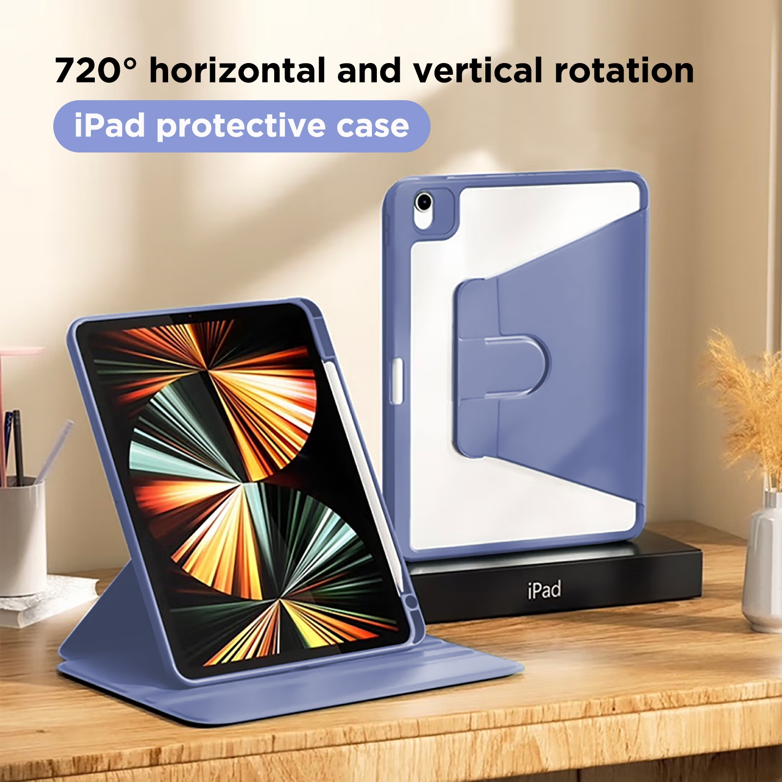 360° Rotating iPad Case with Pencil Holder for iPad Pro 2024/2025 13 Inch, Purple