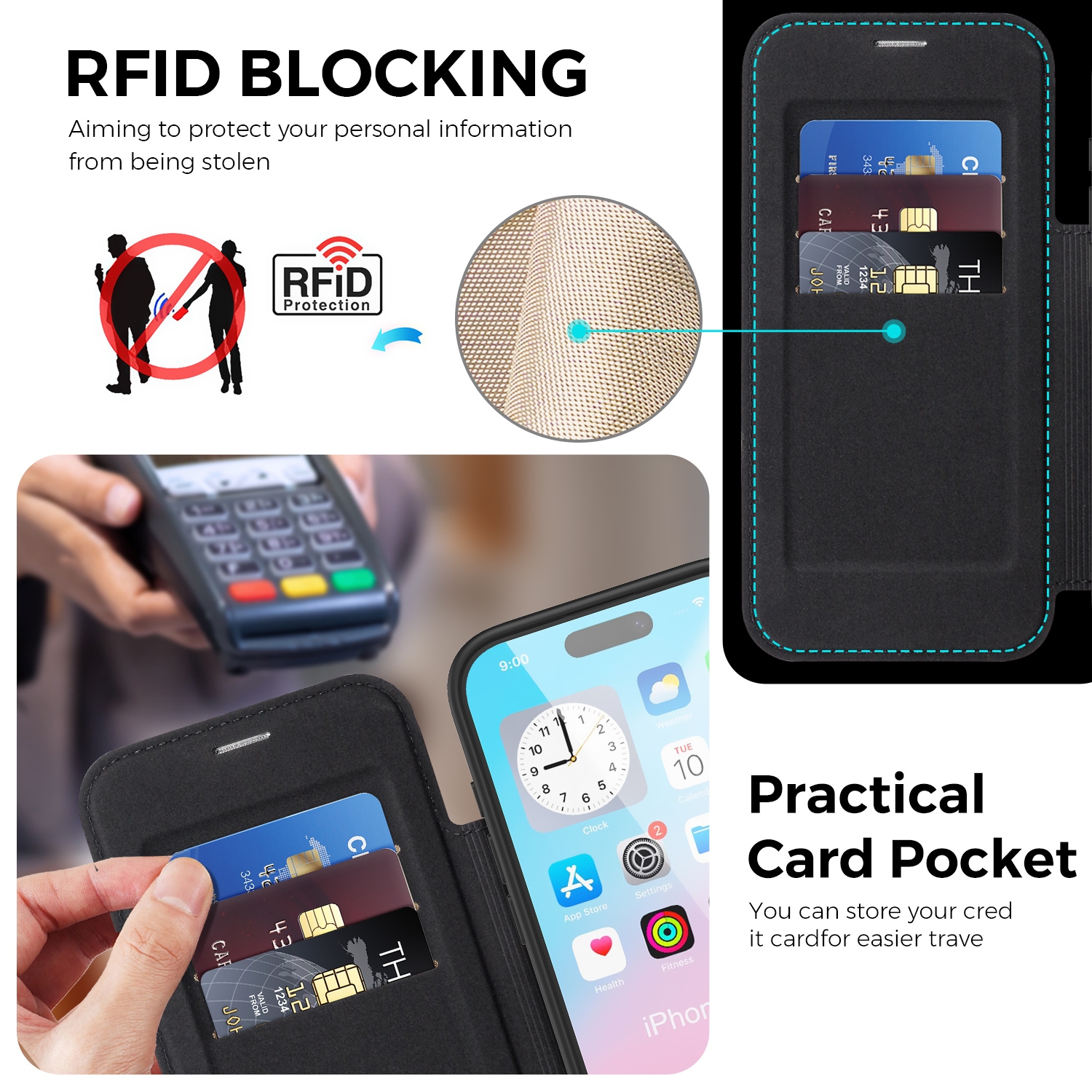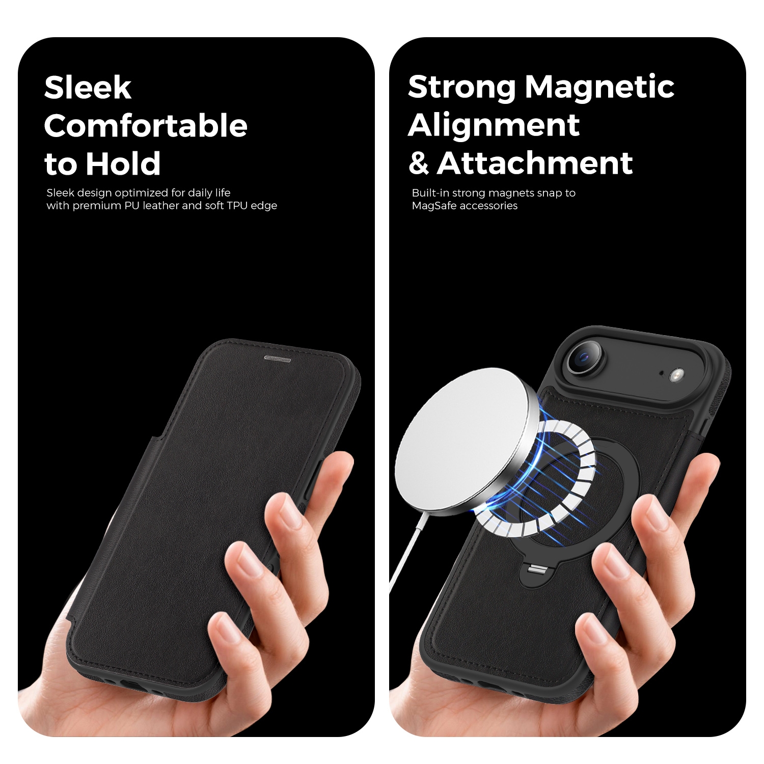 360° Rotating Stand iPhone Air Case - Magnetic Wireless Charging PU Cover, Black