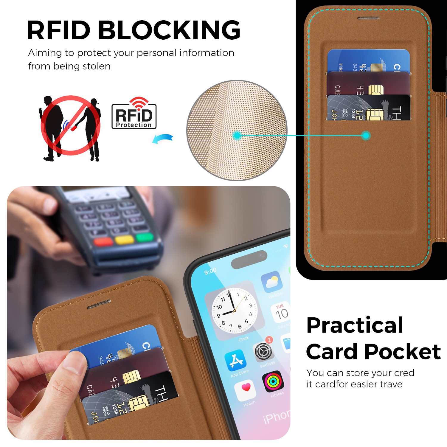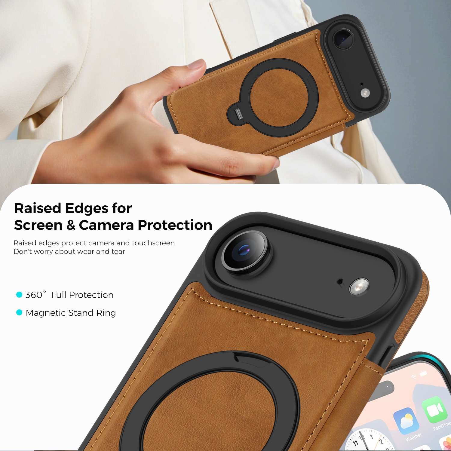 360° Rotating Stand iPhone Air Case - Magnetic Wireless Charging PU Cover, Brown