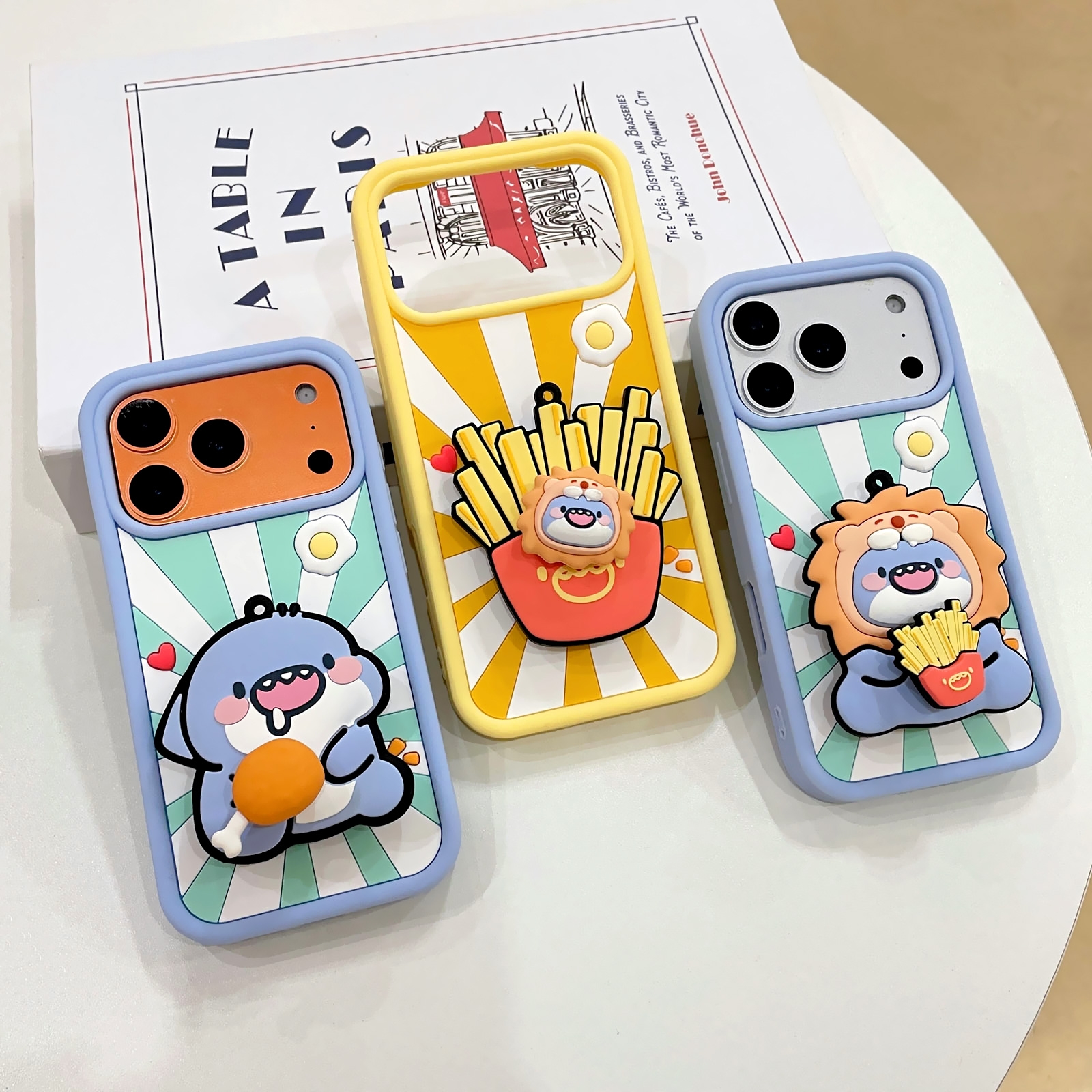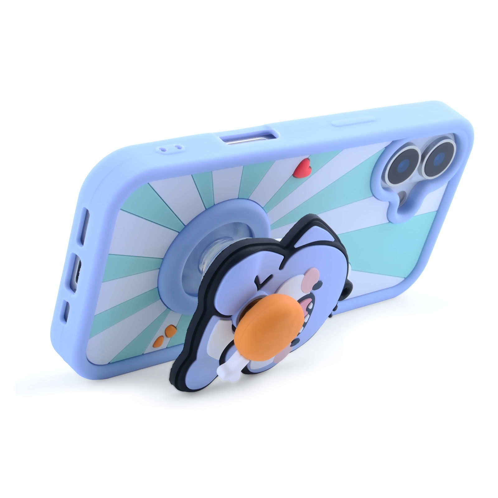 Fat Shark with Chicken Drumstick for iPhone 17 - Soft Silicone cover with Rotatable Kickstand, Light Blue