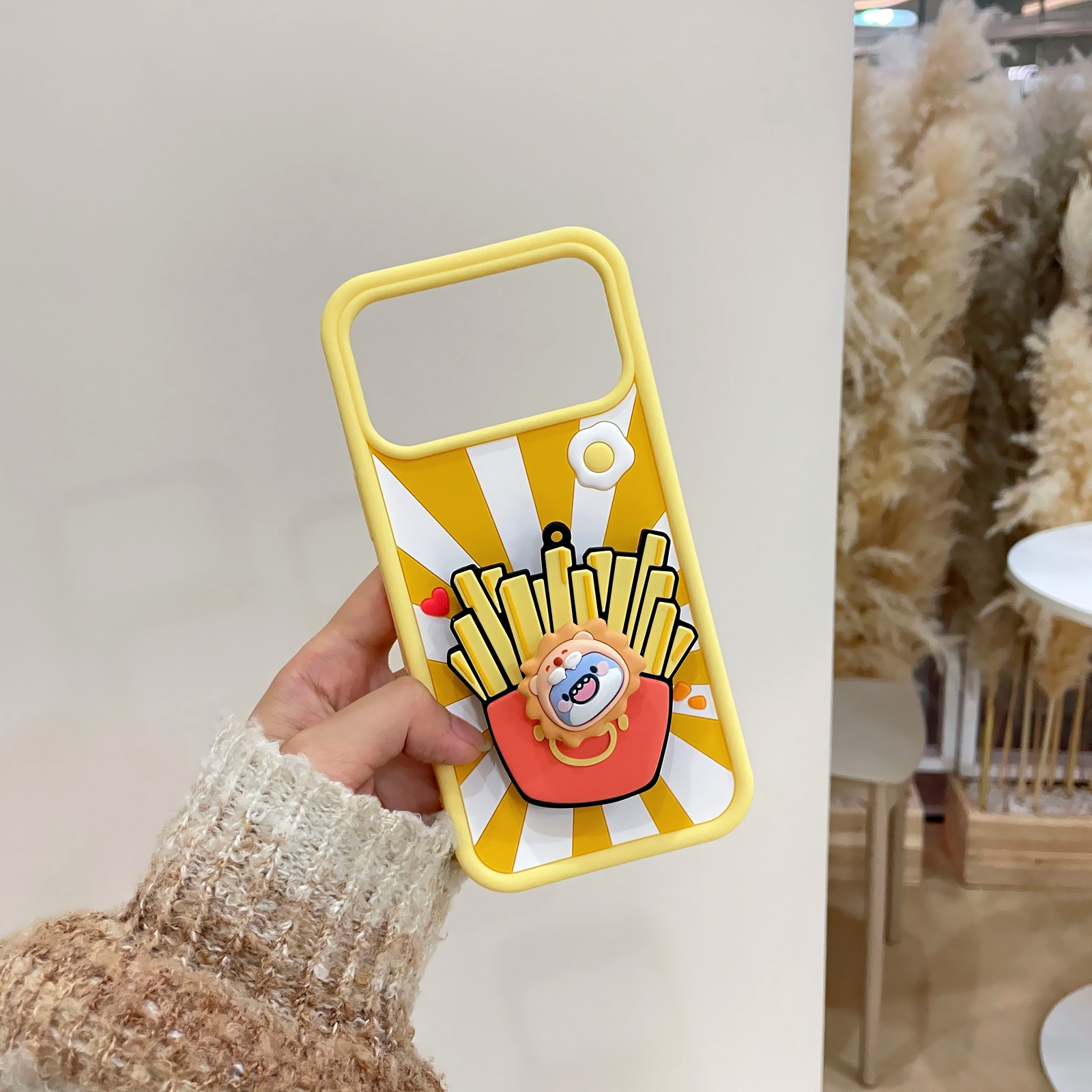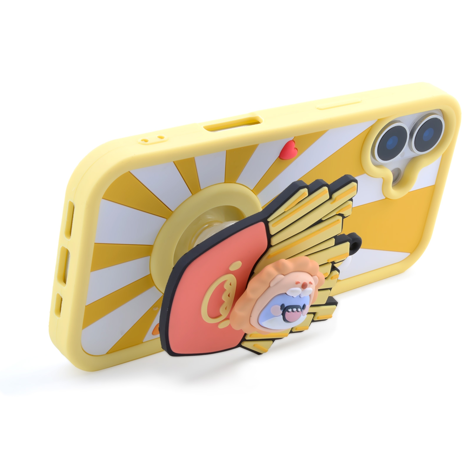 3D Fat Shark with French Fries for iPhone 17 - Soft Silicone cover with Rotatable Kickstand, Yellow