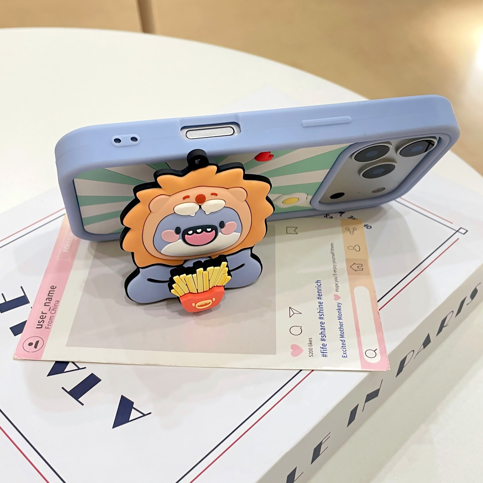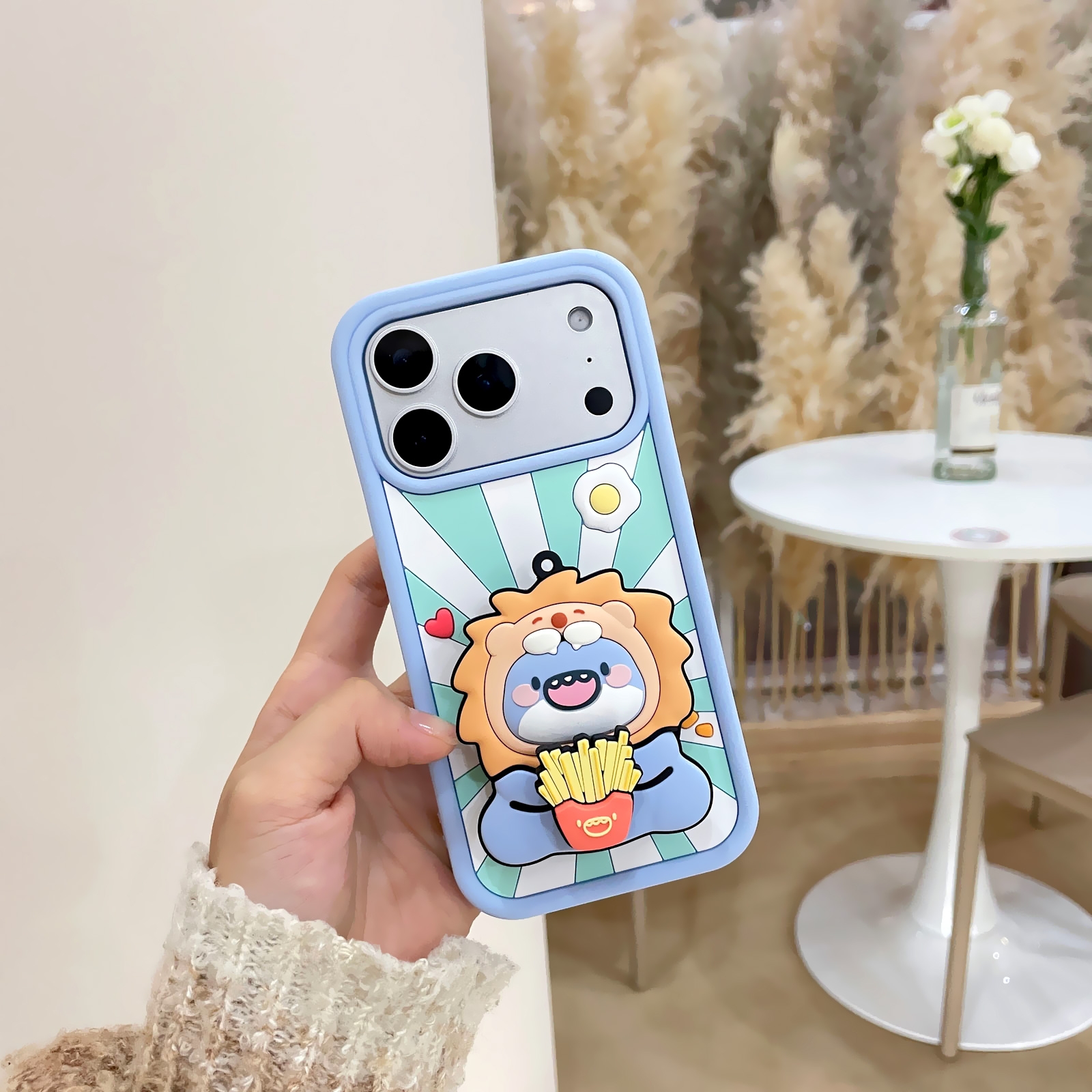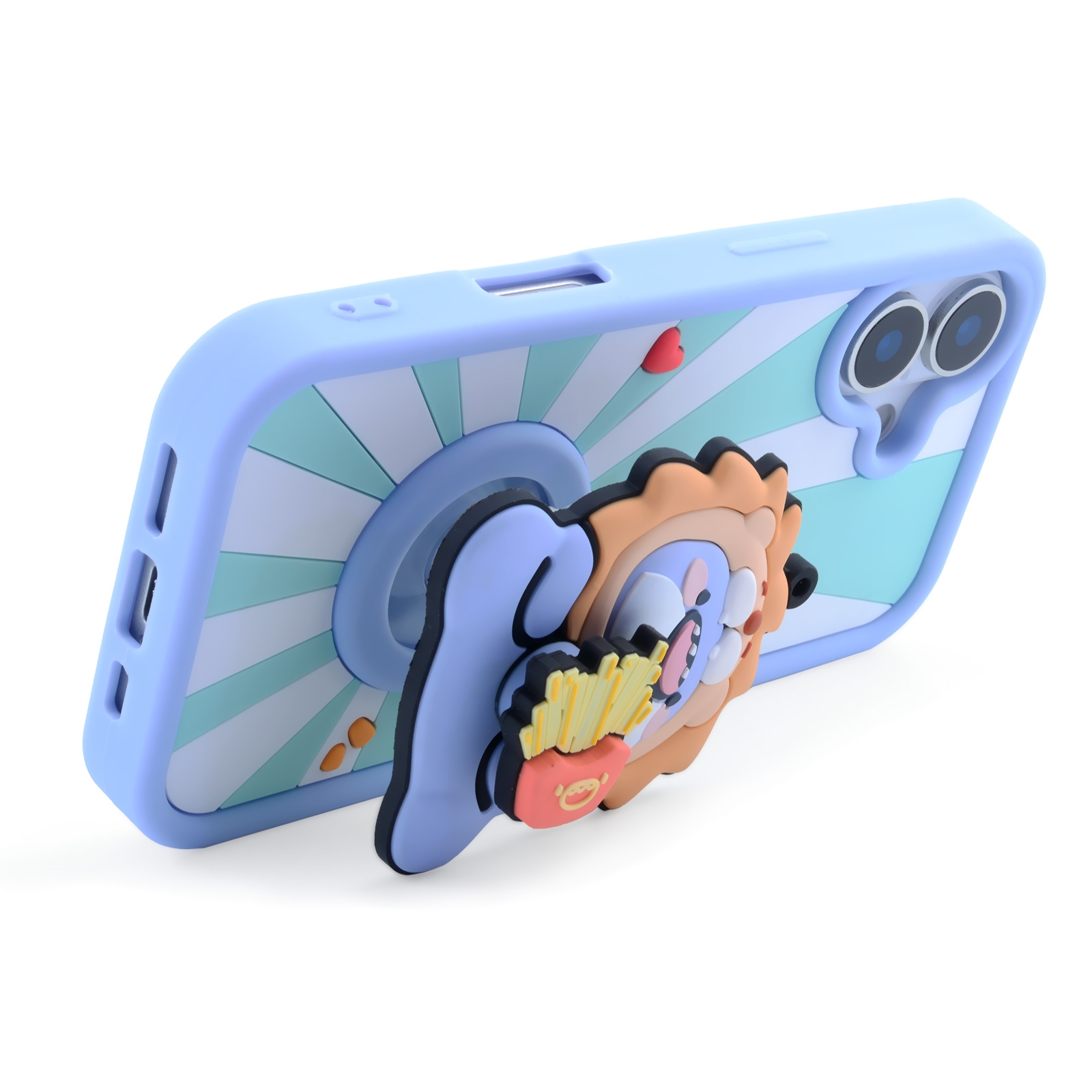 3D Fat Shark with Lion Hat for iPhone 17 - Soft Silicone cover with Rotatable Kickstand, Light Blue