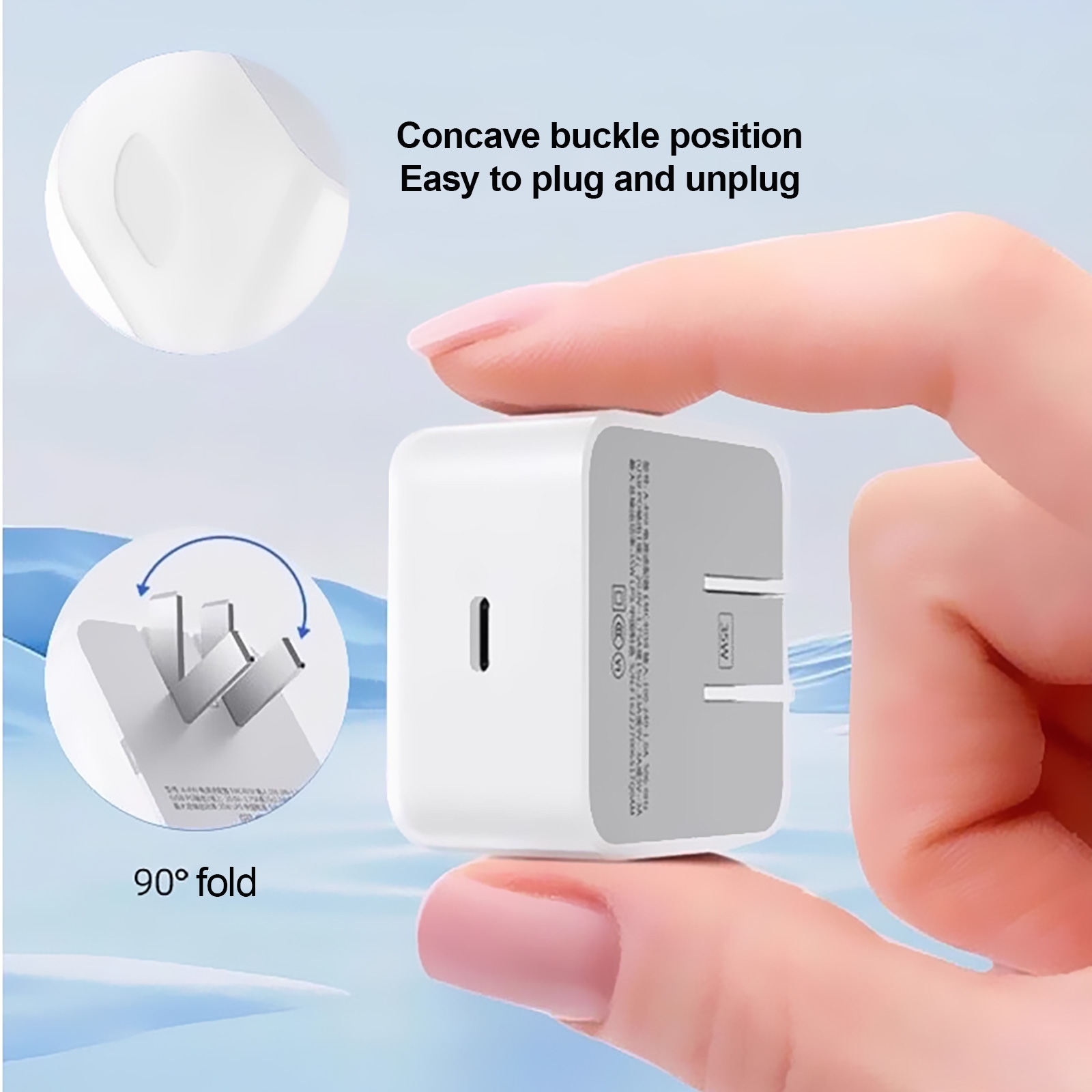 - Compact, Travel-Ready Design: Features a **90° fold** plug for easy storage and a **concave buckle position** making the adapter **easy to plug and unplug**.