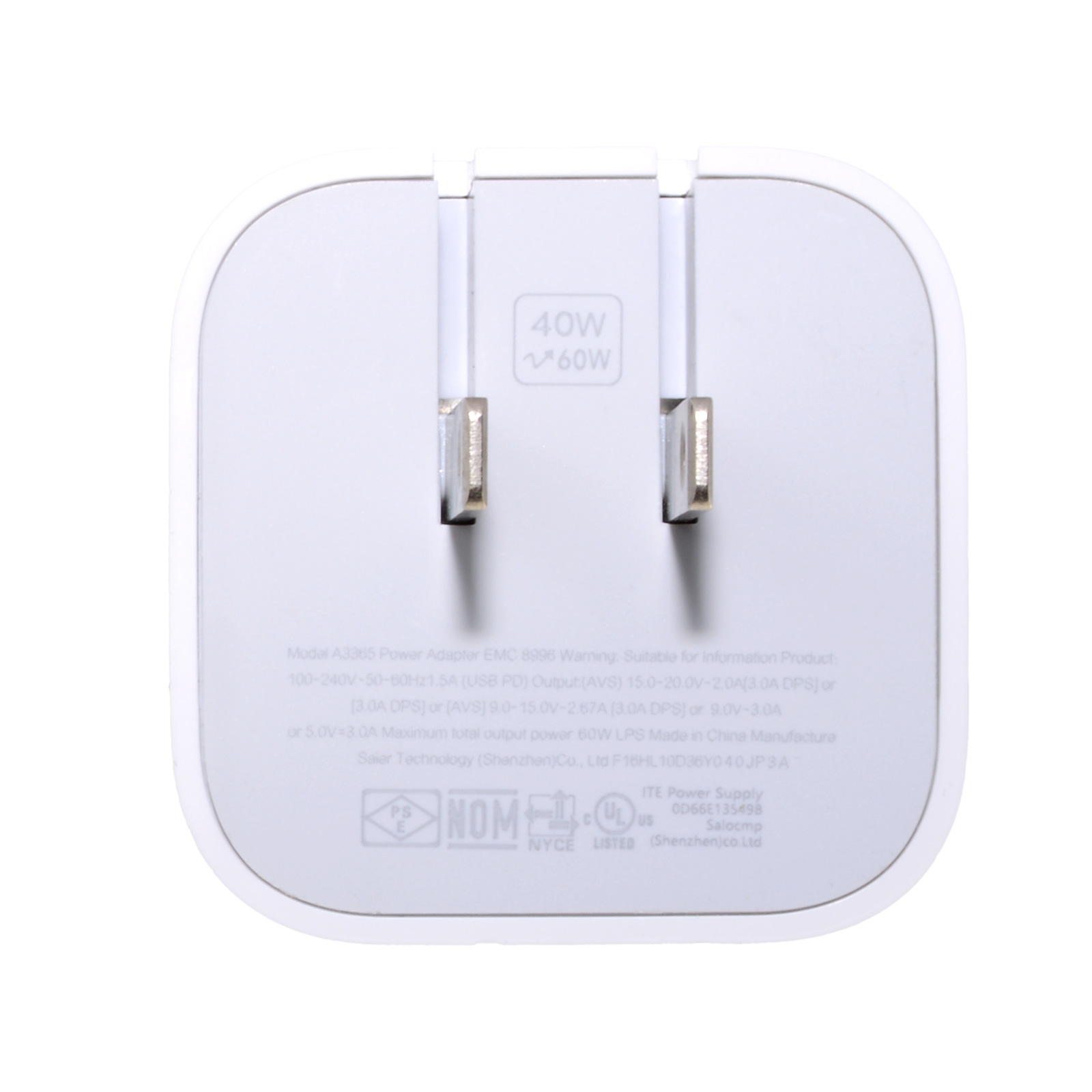 40W Dynamic Power Adapter with 60W Max Wall Charge USB C Fast Charge Block - White