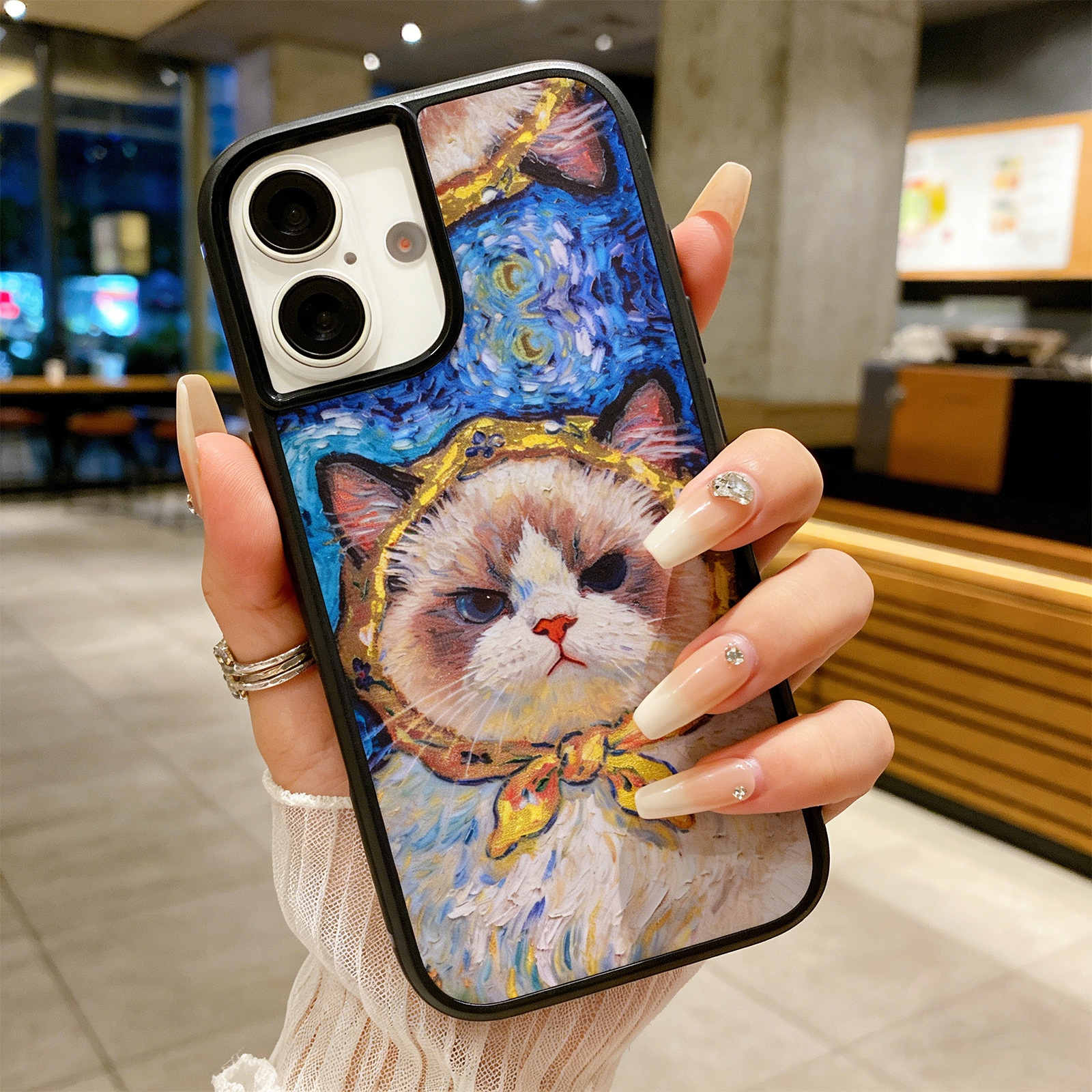 Van Gogh Style Ragdoll Cat Phone Case for iPhone 17, Blue