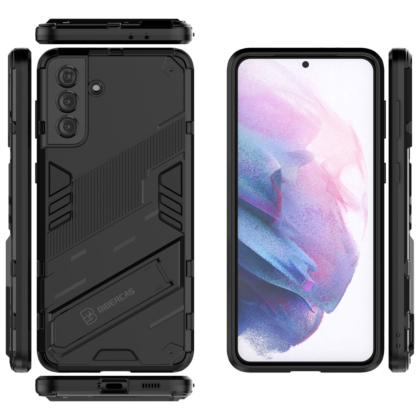 Armor Texture Phone Case with Foldable Hidden Stand for S26 Plus, Black