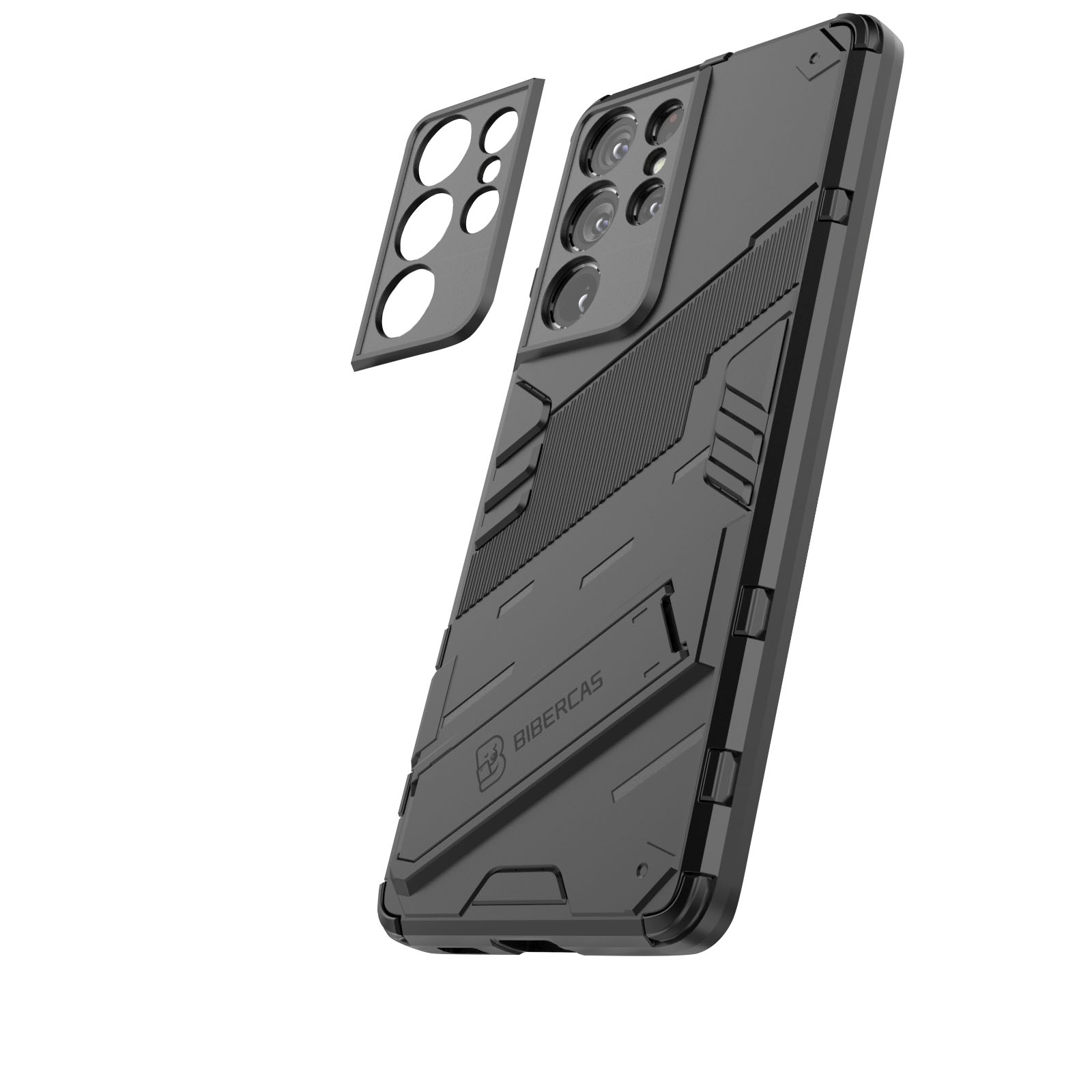 360 Rotation Kickstand Magnetic S26 Ultra Case - Airbag Shockproof Metal Stand, Black