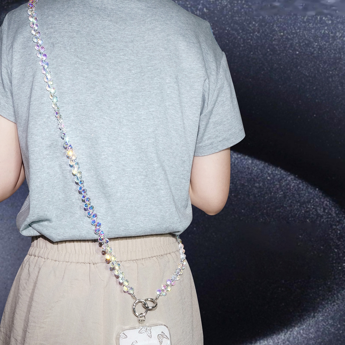 Artificial Crystal Beaded Crossbody Phone Lanyard, Gray