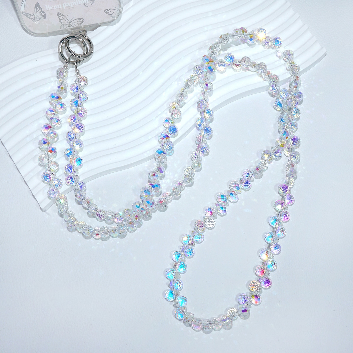Artificial Crystal Beaded Crossbody Phone Lanyard, White