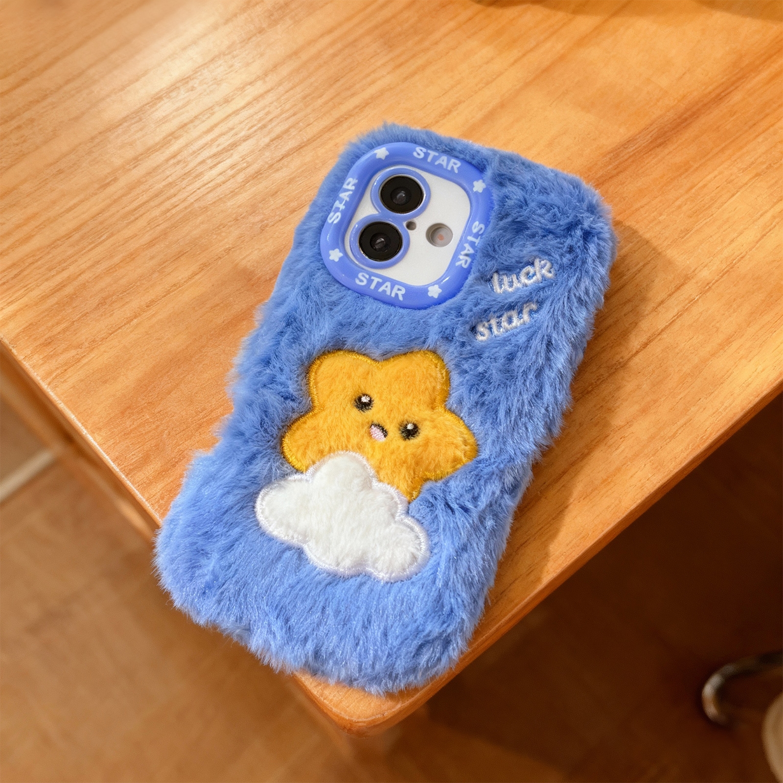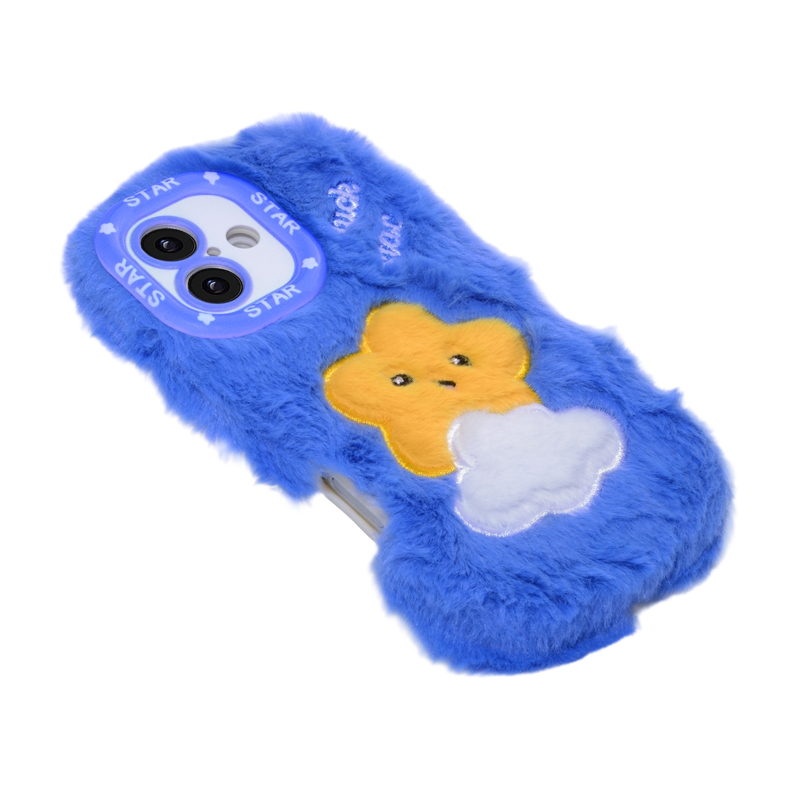 Blue Cloud Star Plush Silicone Phone Case for iPhone 16 – Soft Cute Protective Cover