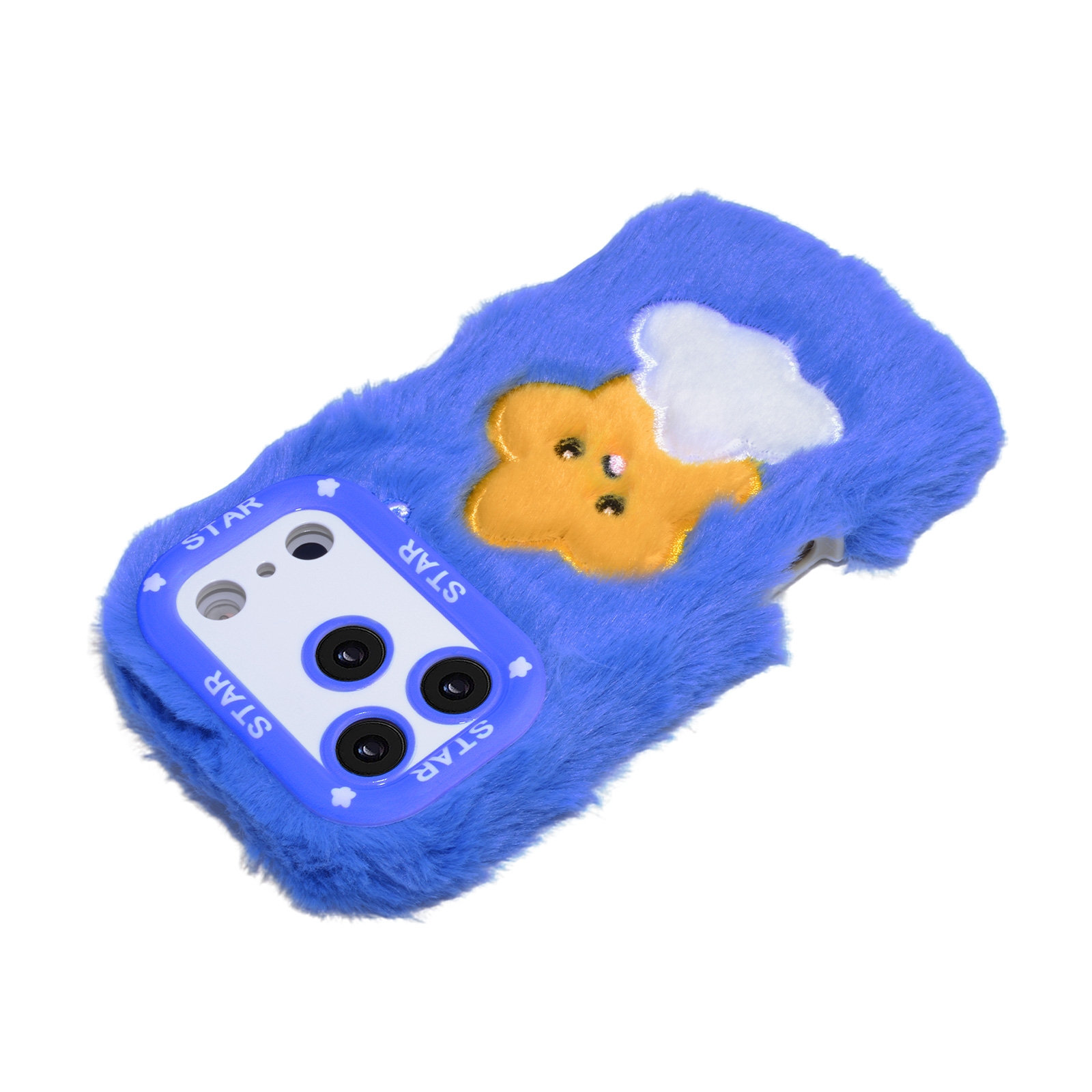 Blue Cloud Star Plush Silicone Phone Case for iPhone 17 Pro – Soft Cute Protective Cover