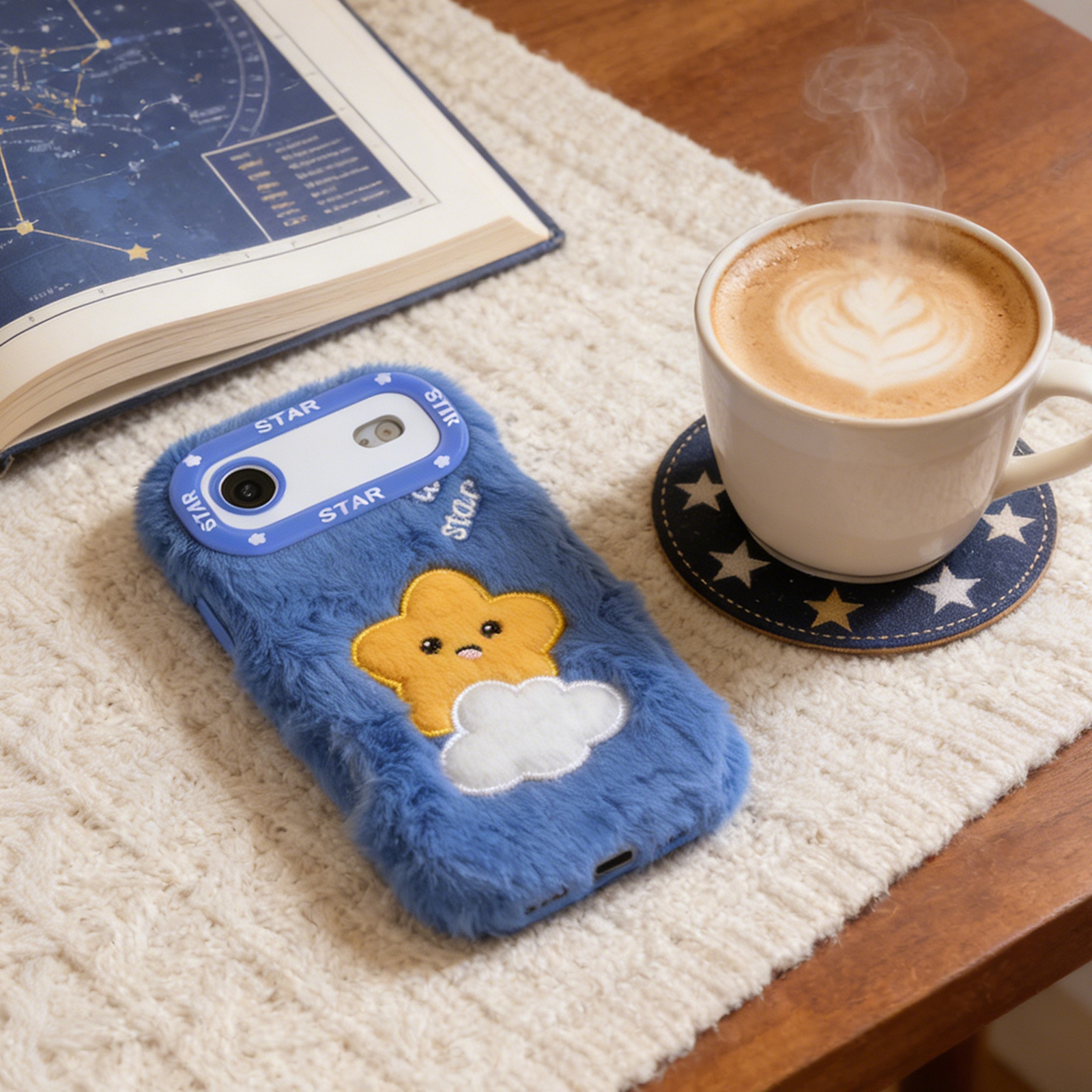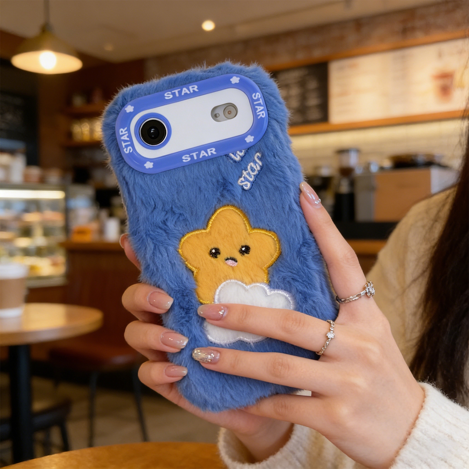 Blue Cloud Star Plush Silicone Phone Case for iPhone Air – Soft Cute Protective Cover