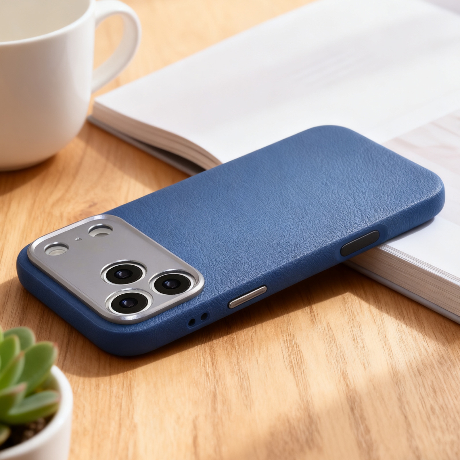 Blue iPhone 17 Pro Max Magnetic PU Leather Case – Precise Cutouts