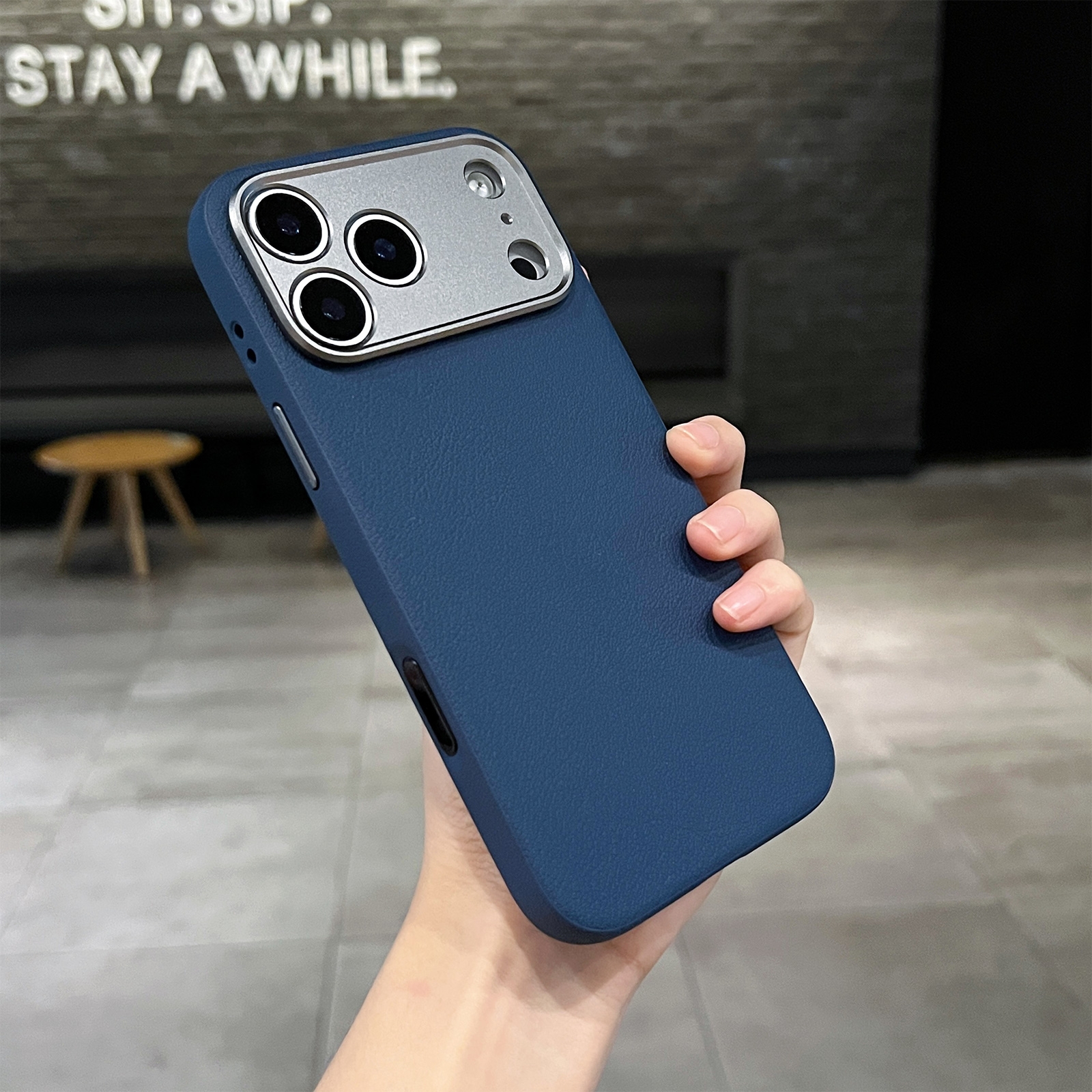 iPhone 17 Pro Max PU Leather Case – Calf-Pattern Back Cover
