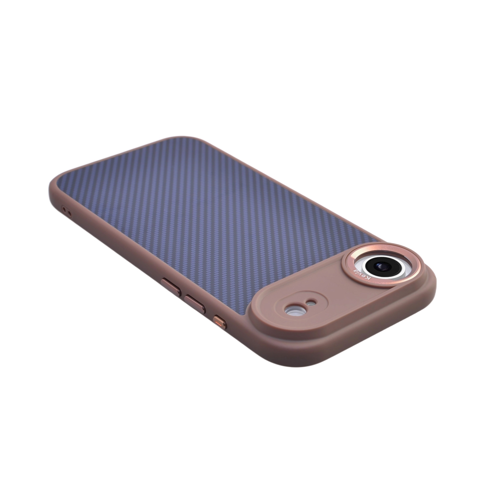 - Brown Contrast Frame: Warm brown bumper complements the dark carbon texture for a refined look.