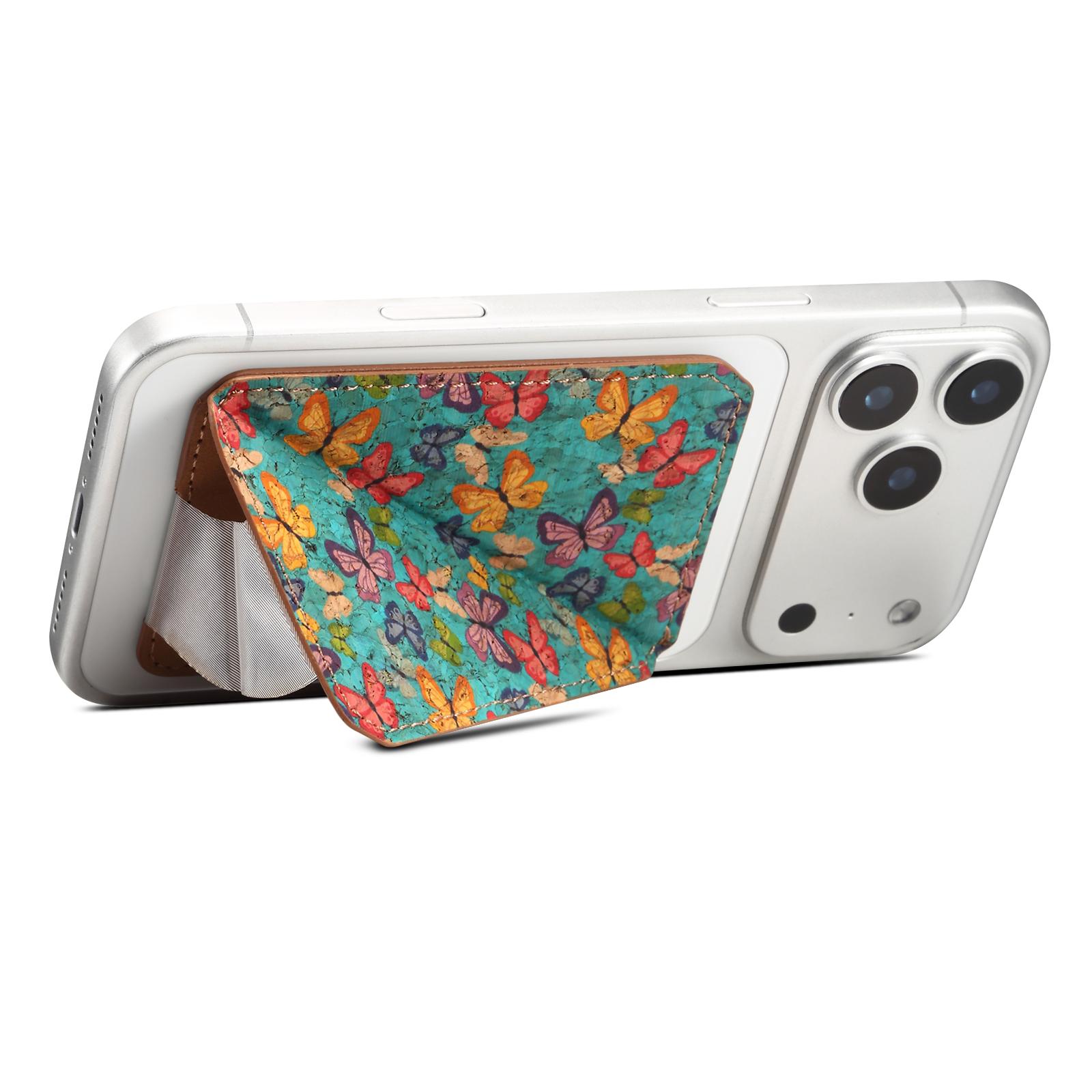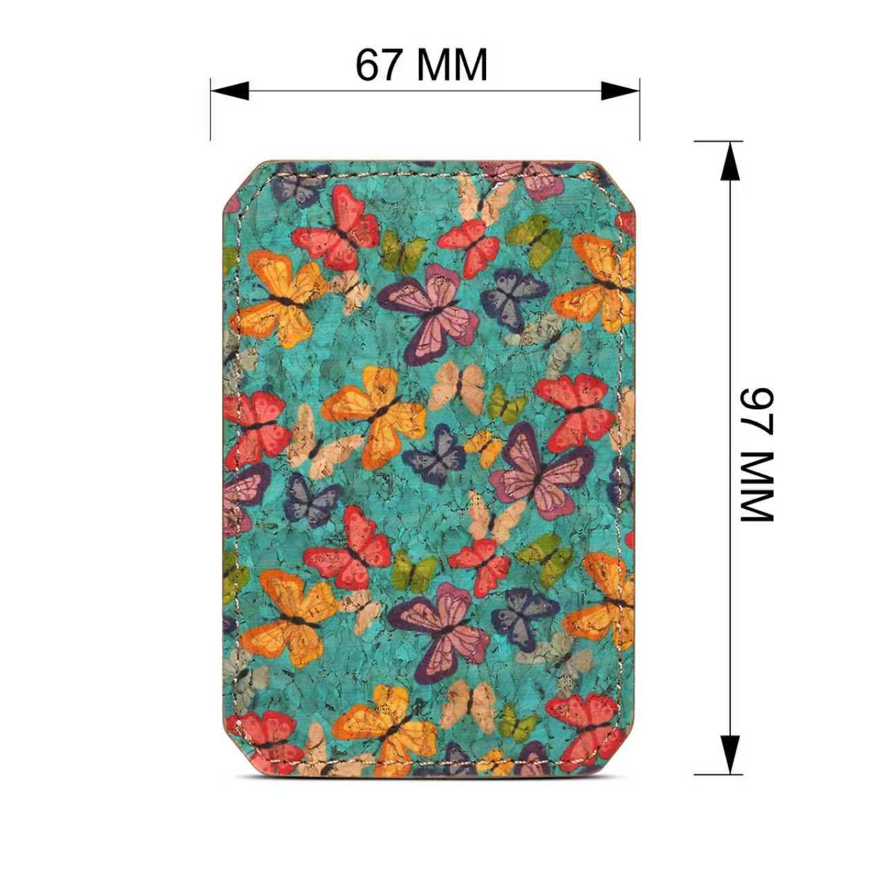 Denior Floral & Butterfly Printed RFID Blocking Magnetic Card Holder | Cork | Holds 2 Cards - Butterfly Blue