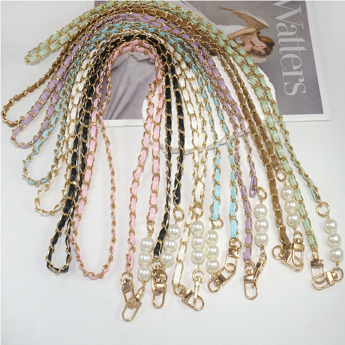 Chic Vegan Leather Woven Chain and Faux Pearl Crossbody Phone Lanyard, Mocha