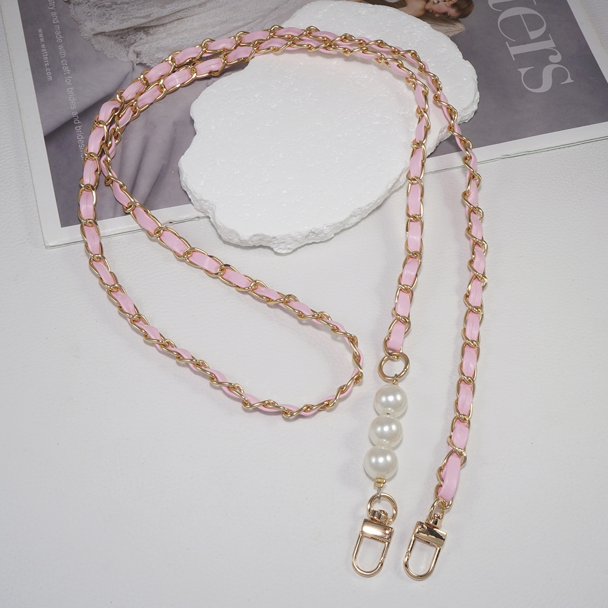 Chic Vegan Leather Woven Chain and Faux Pearl Crossbody Phone Lanyard, Pink