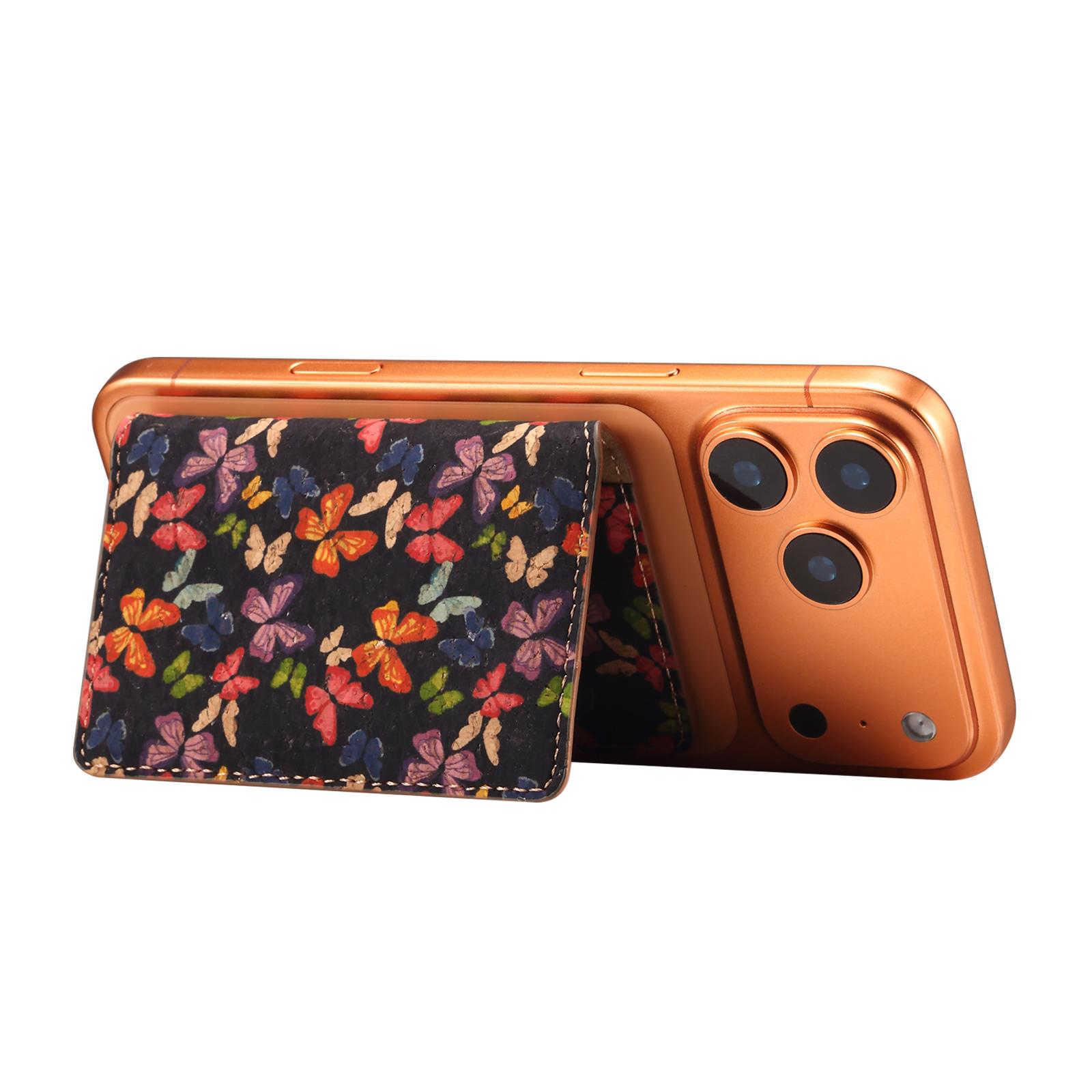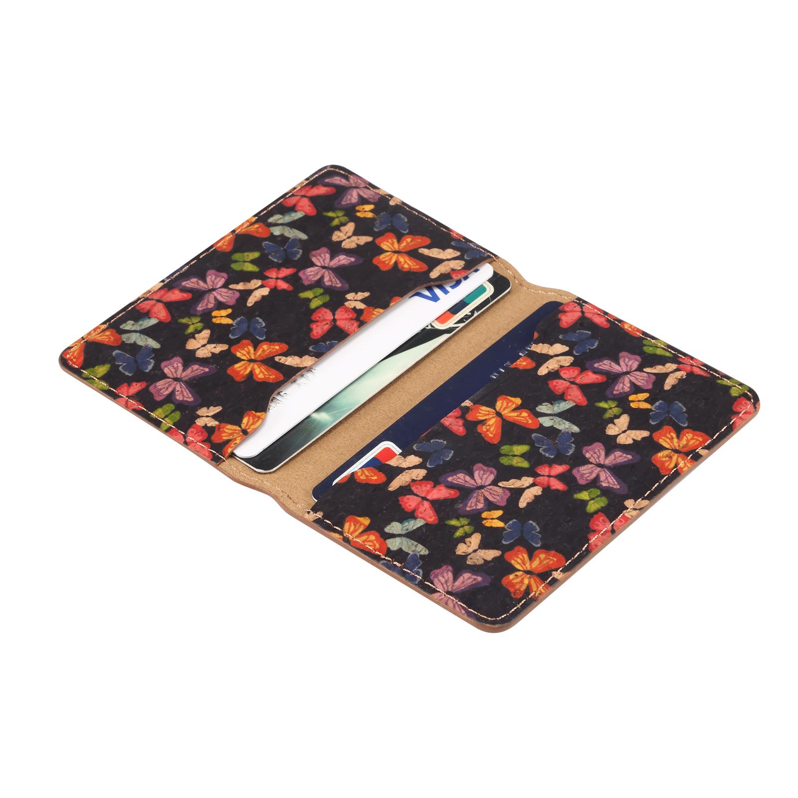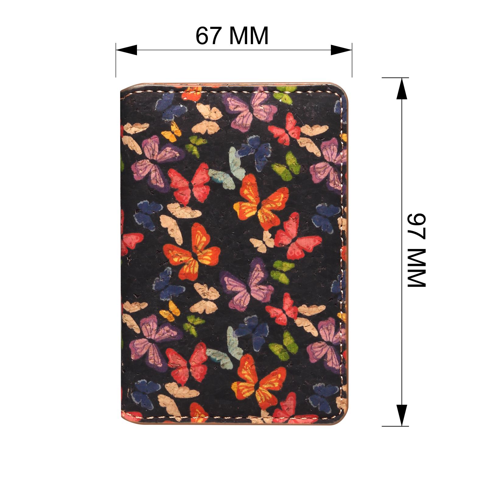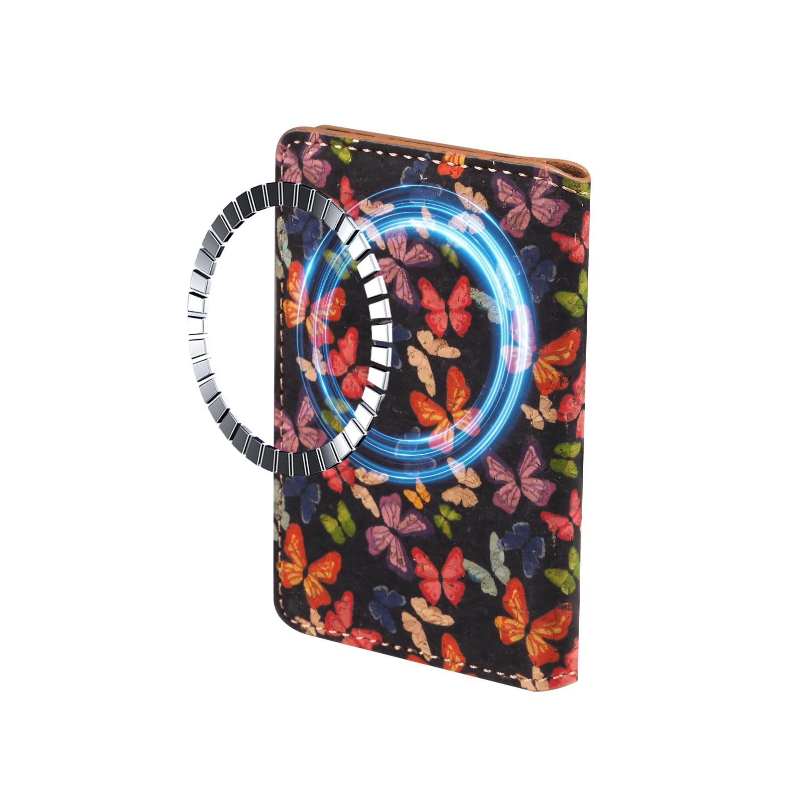 Denior Cork Floral & Butterfly Printed N52 Magnetic RFID Blocking Card Holder | Cork | Holds 3 Cards - Butterfly Black