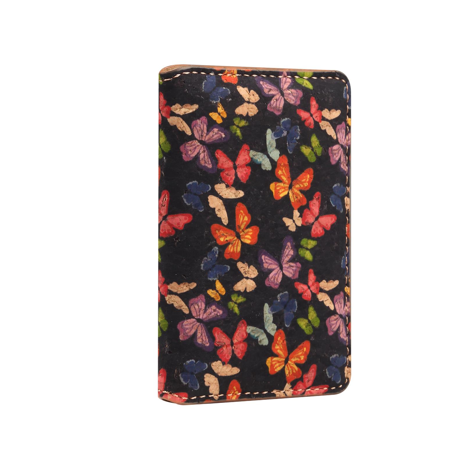 Cork Butterfly Printed N52 Magnetic RFID Blocking Card Holder, Black