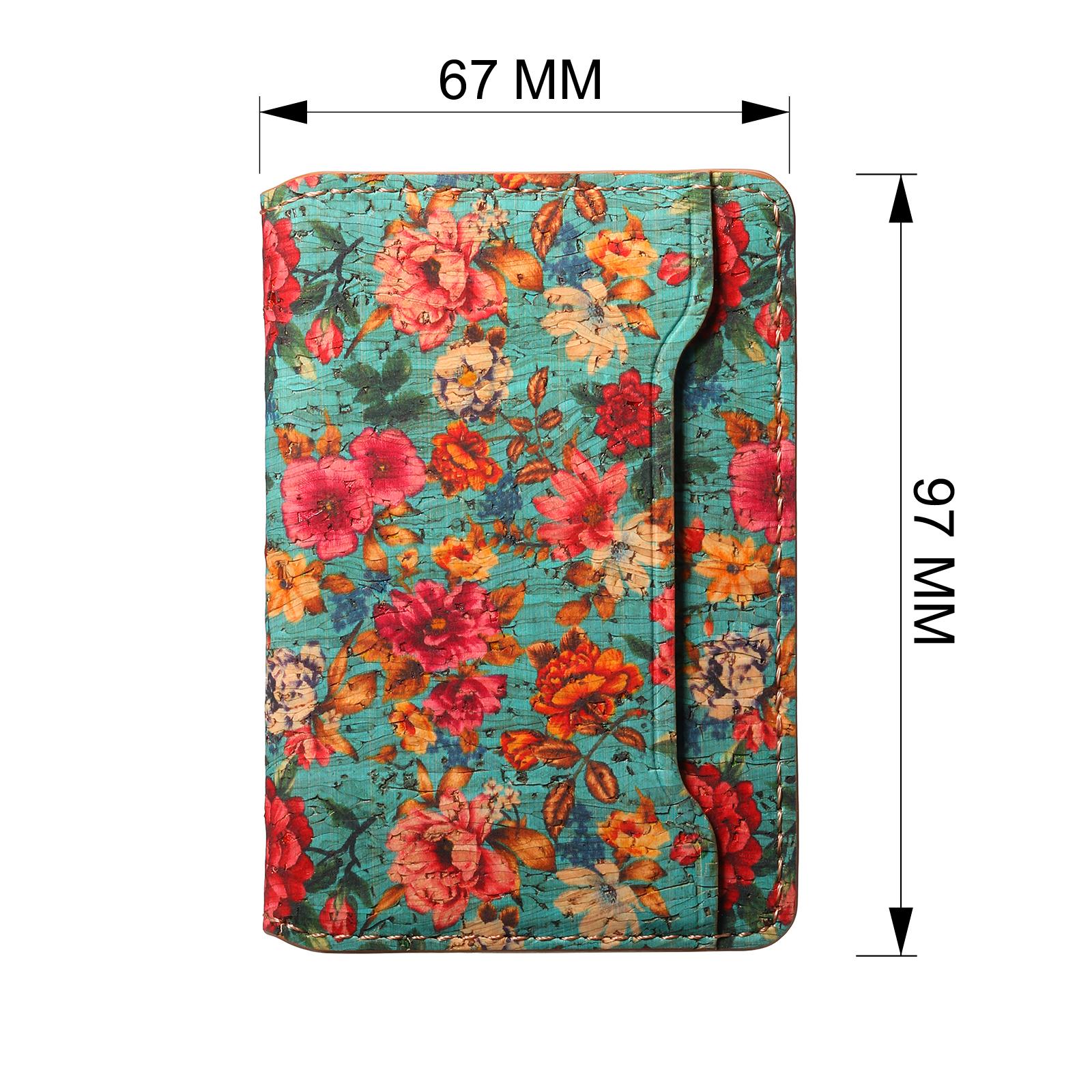 Cork Floral Printed N52 Magnetic Card Holder, Blue