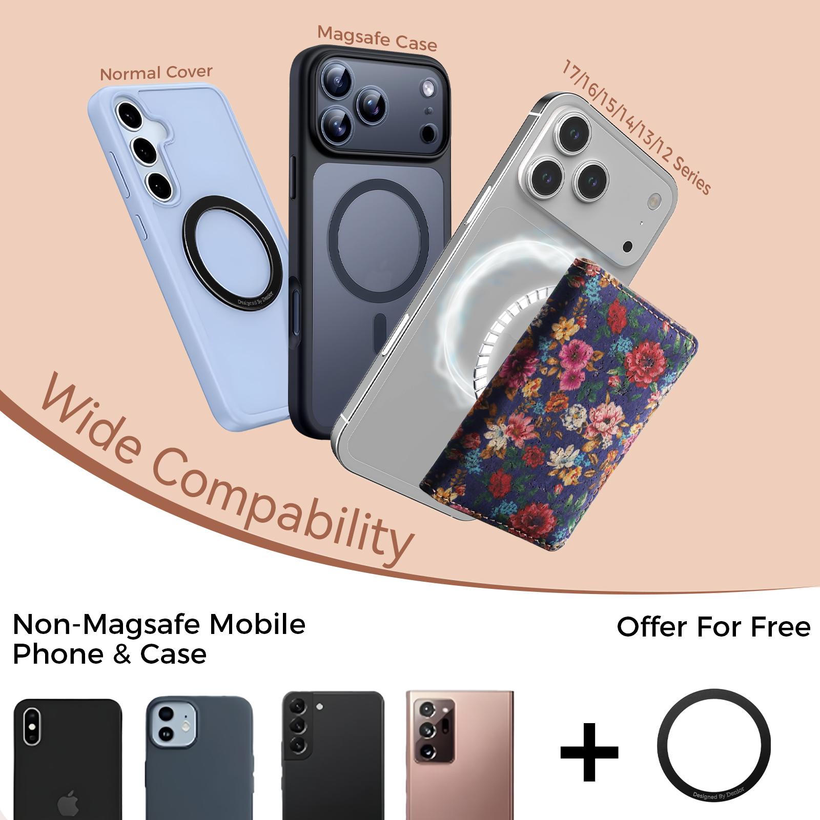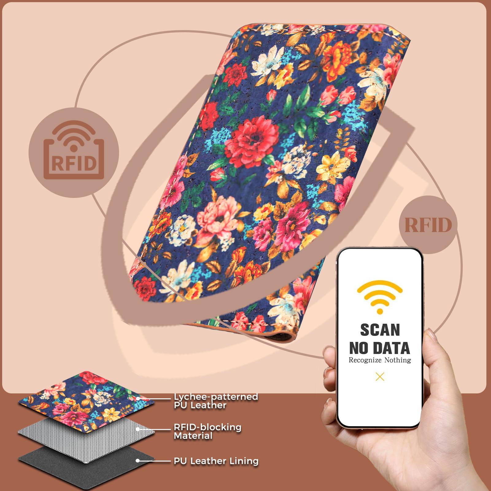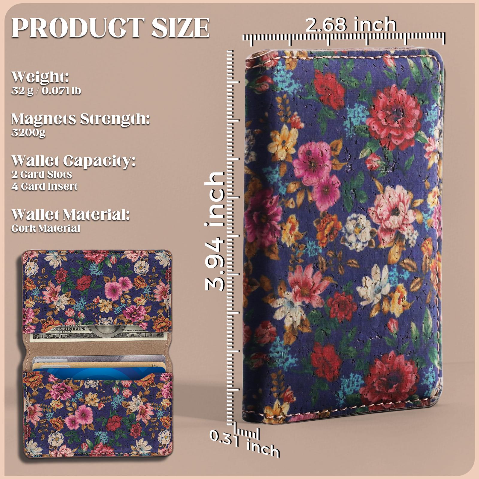Cork Floral Printed N52 Magnetic RFID Blocking Card Holder, Purple