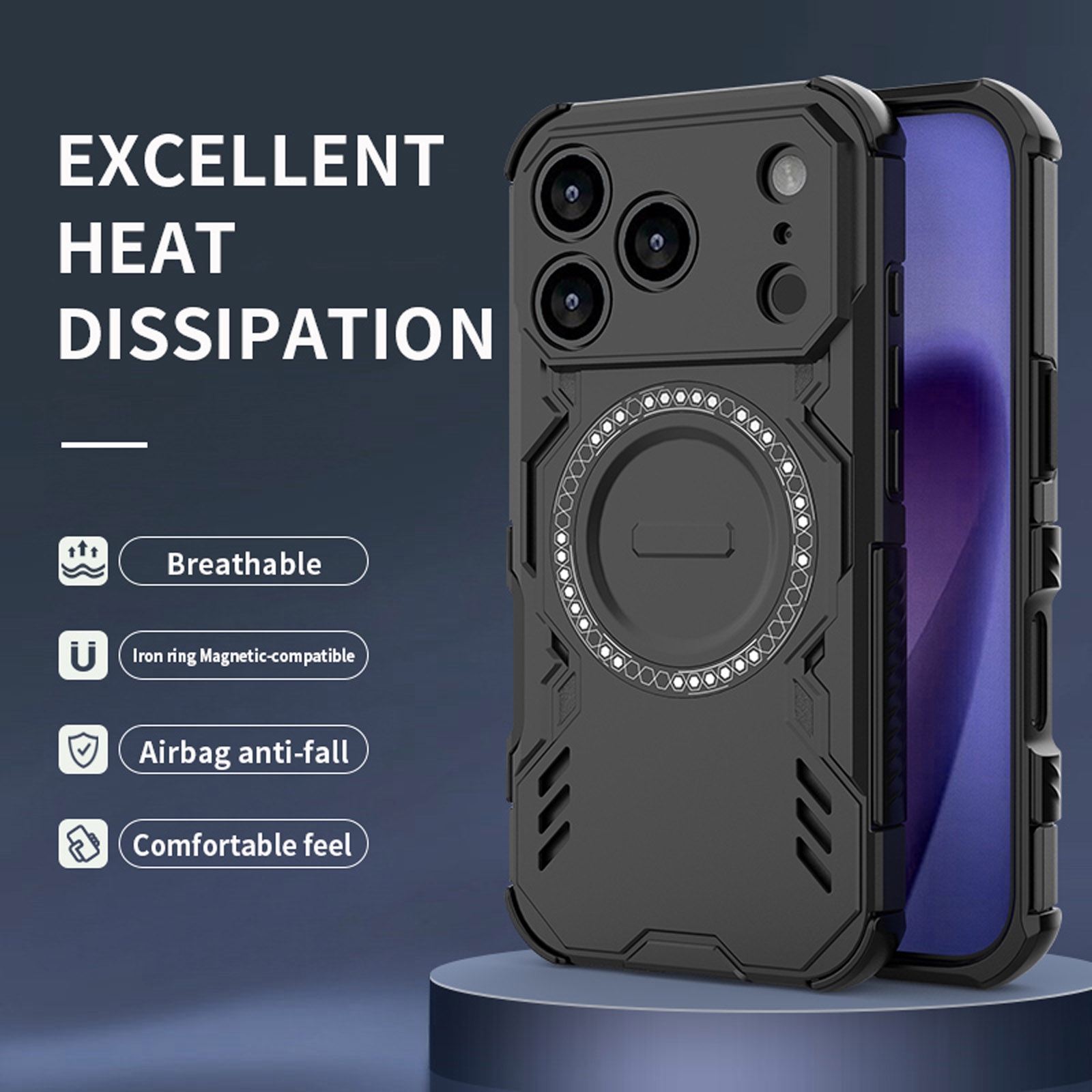 Corner Airbag Shockproof Magnetic iPhone 17 Pro Case - Enhanced Cooling Ventilation, Black