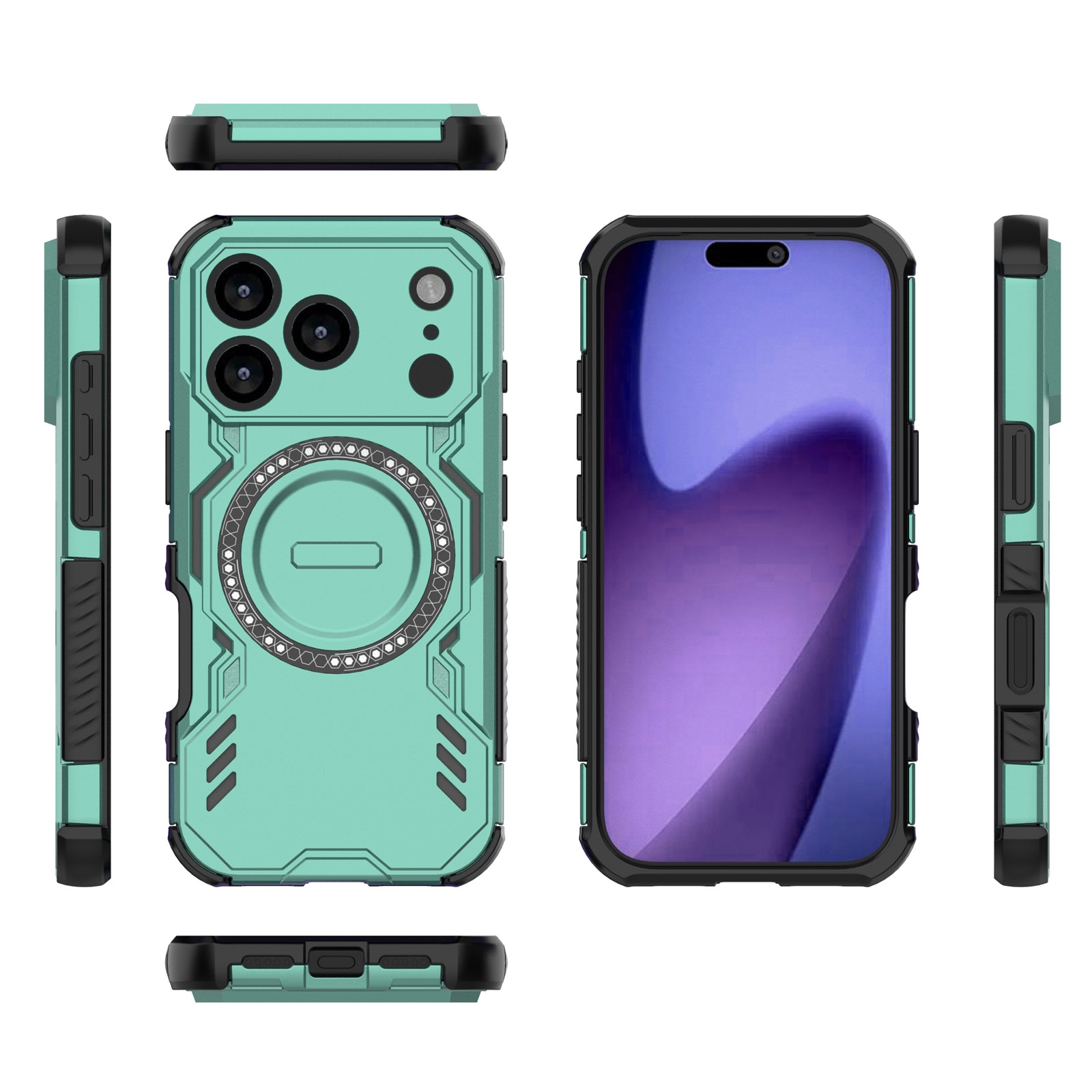 Corner Airbag Shockproof Magnetic iPhone 17 Pro Max Case - Enhanced Cooling Ventilation, Green