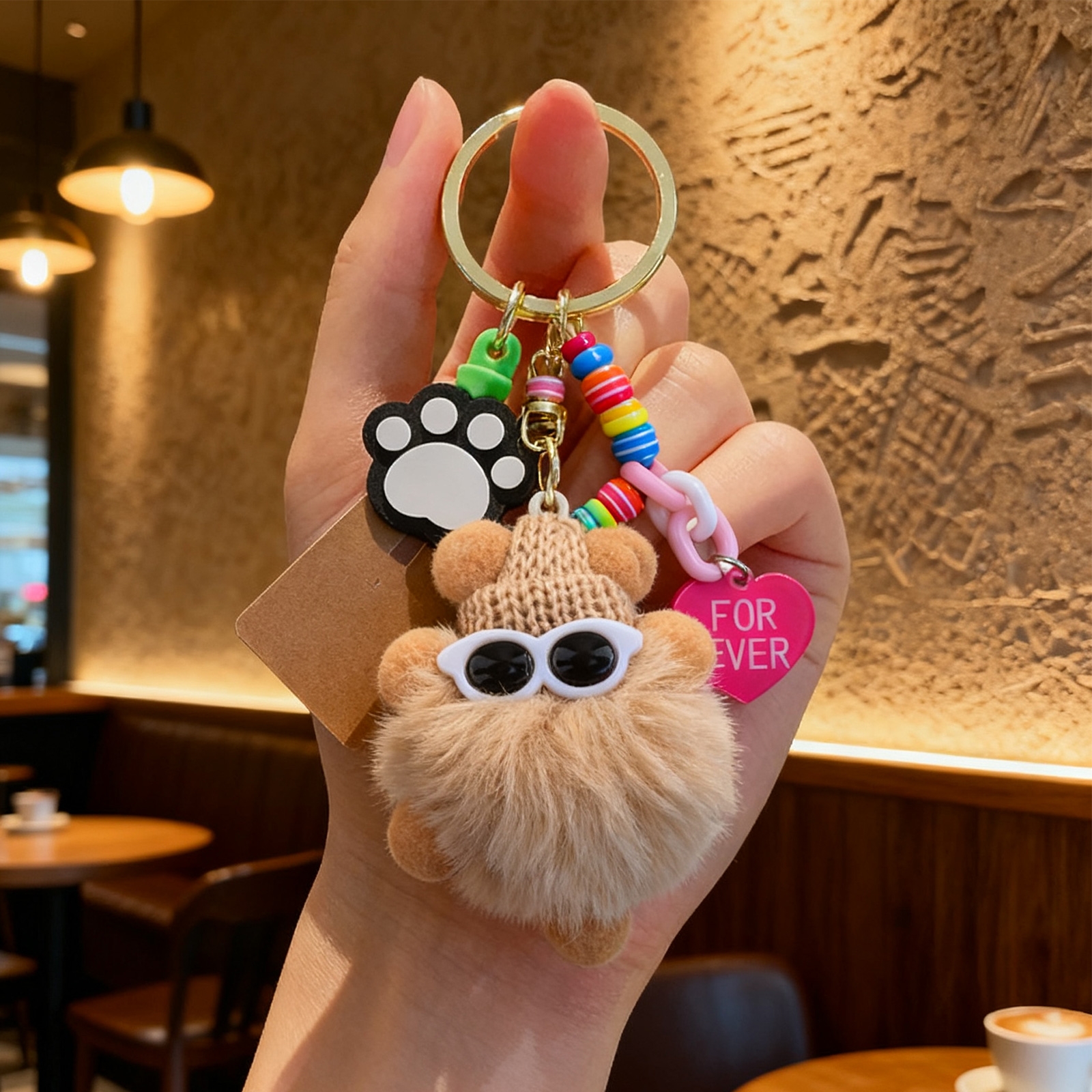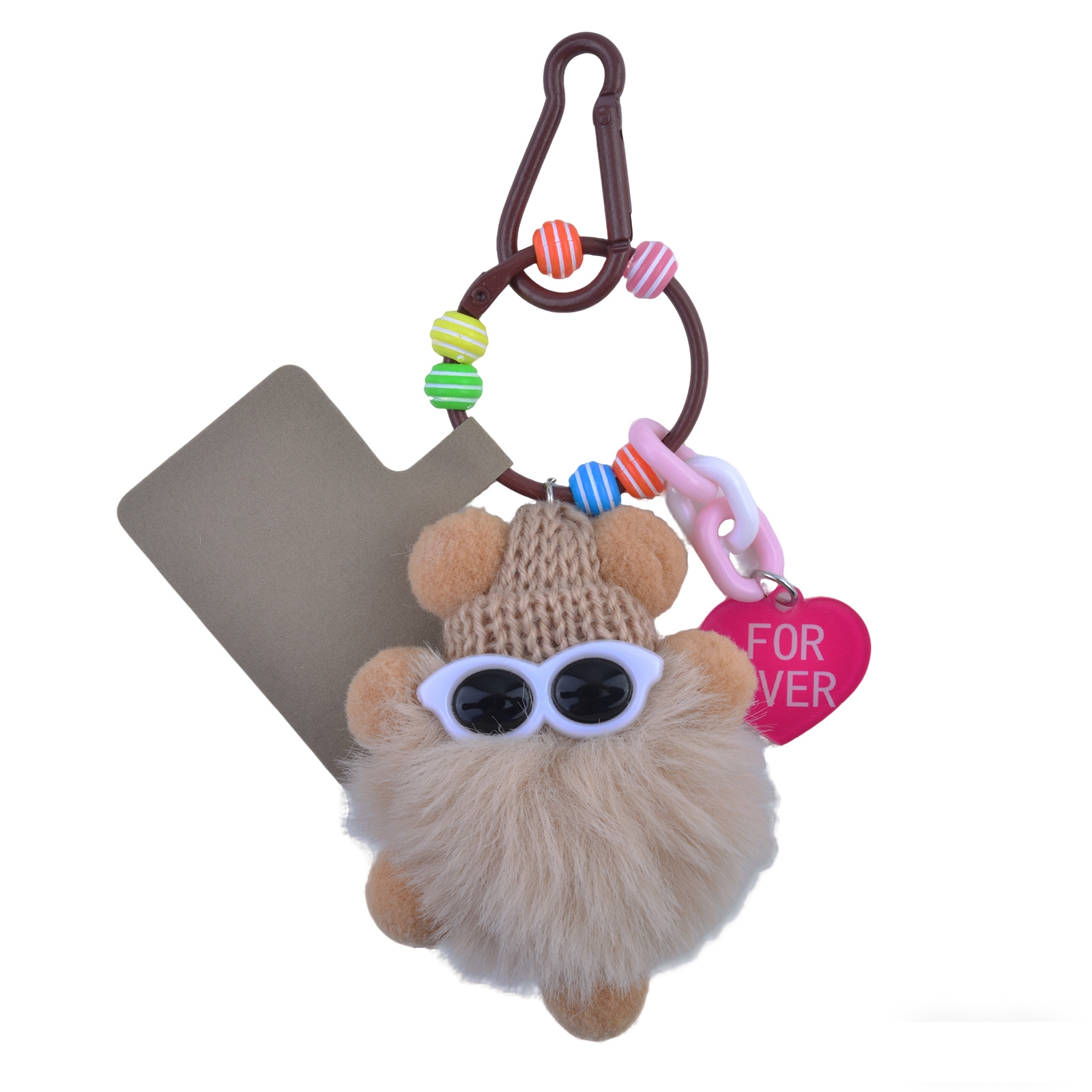Cute Coal Ball Keychain - Fluffy Phone Charm, Khaki