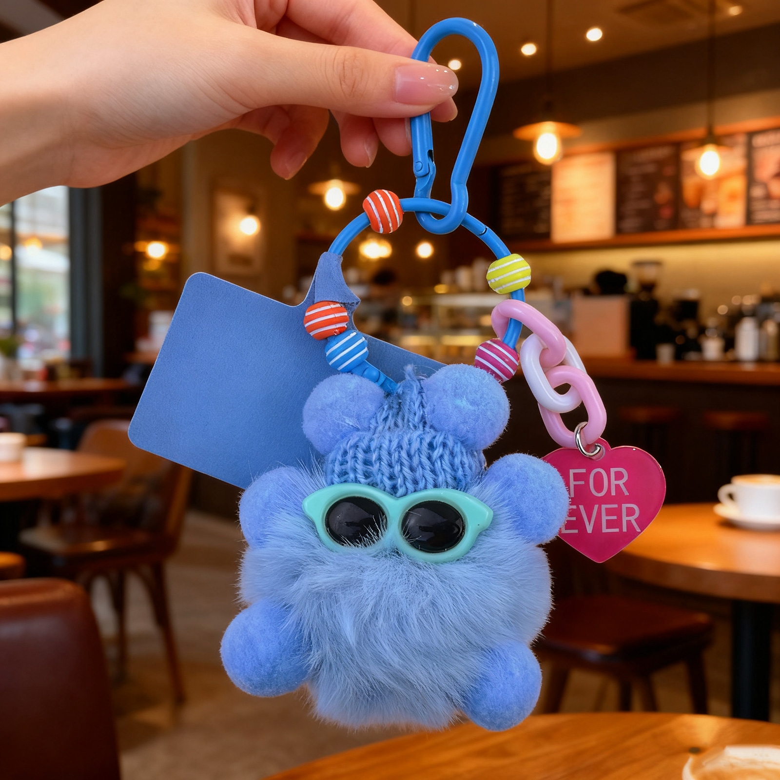 Cute Coal Ball Keychain - Fluffy Phone Charm, Light Blue