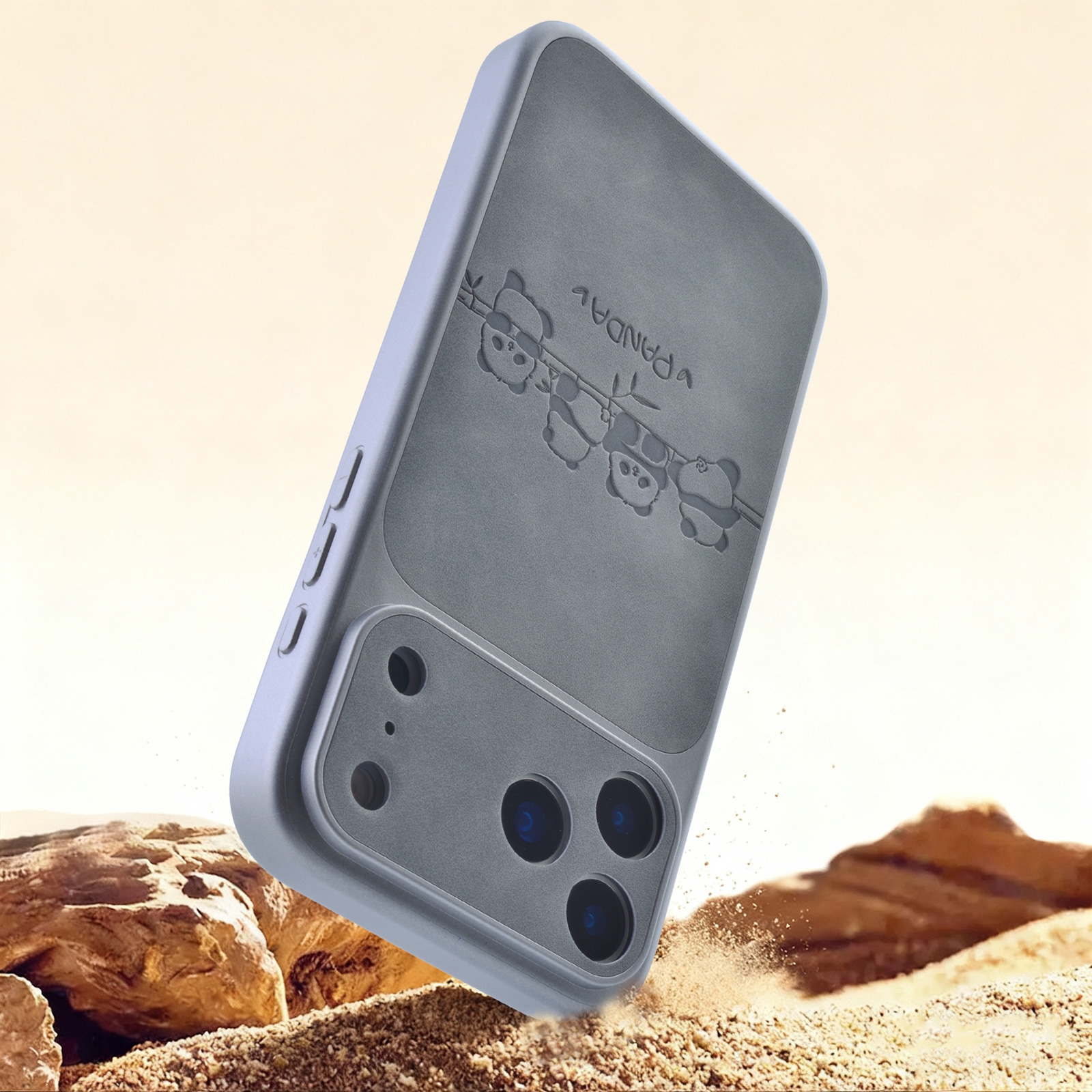 Cute Panda Leather Pattern Back iPhone 17 Pro Case - TPU Shockproof Phone Cover, Gray
