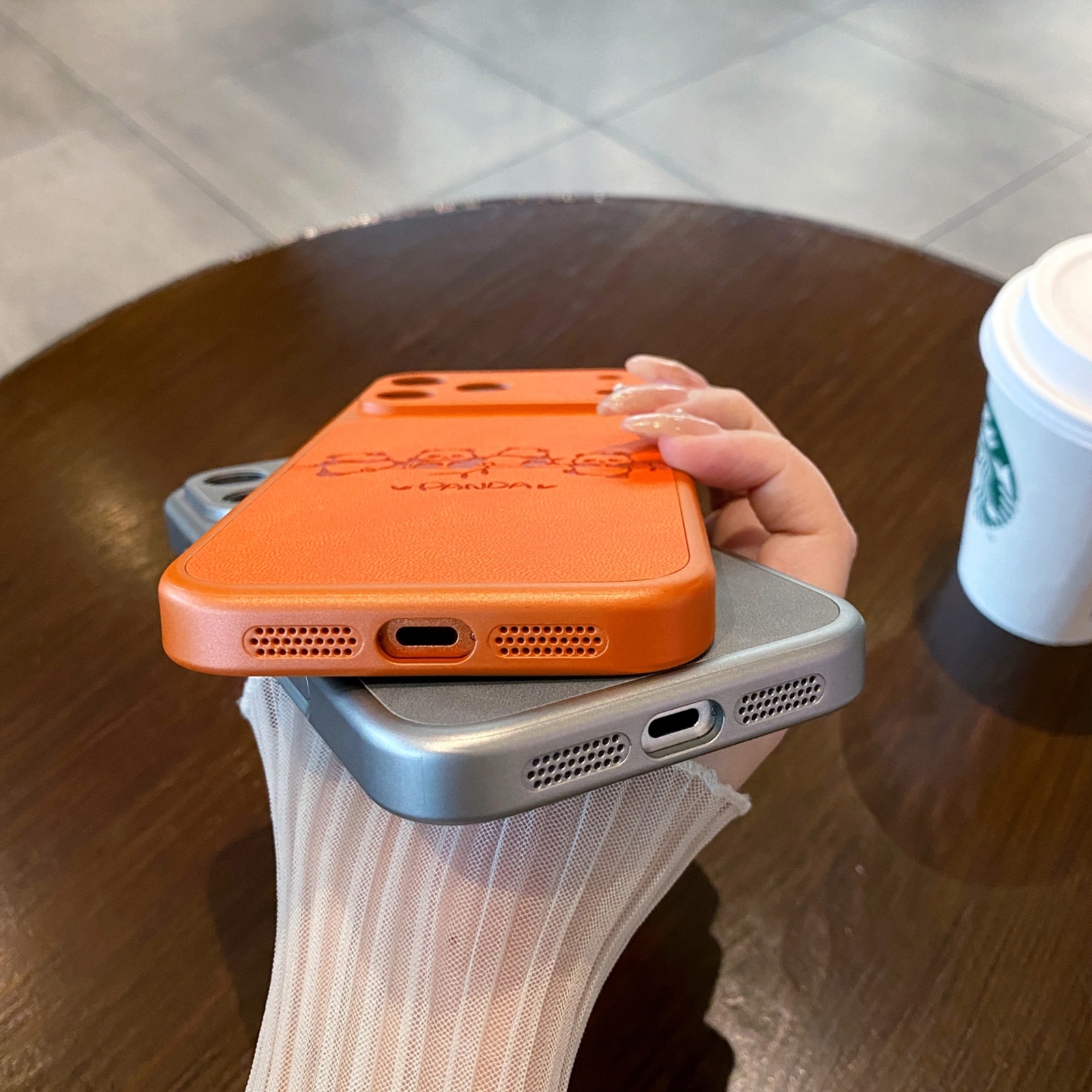 Cute Panda Leather Pattern Back iPhone 17 Pro Max Case - TPU Shockproof Phone Cover, Orange