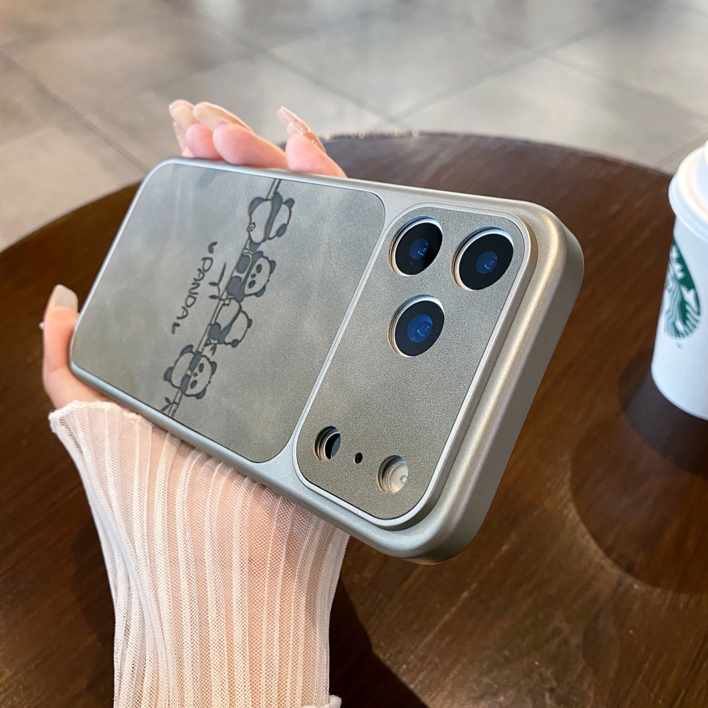 Cute Panda Leather Pattern Back iPhone 17 Pro Max Case - TPU Shockproof Phone Cover, Gray