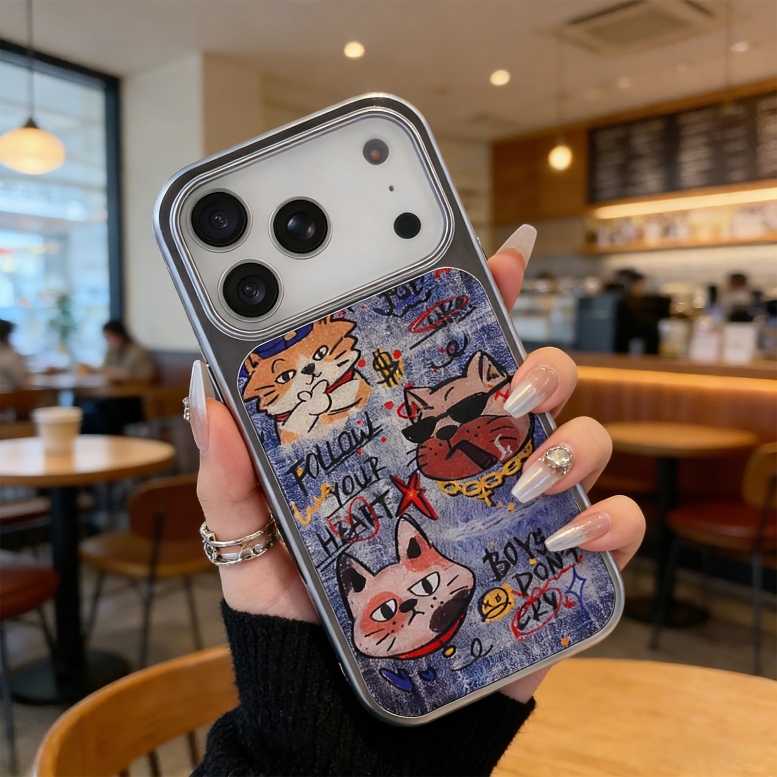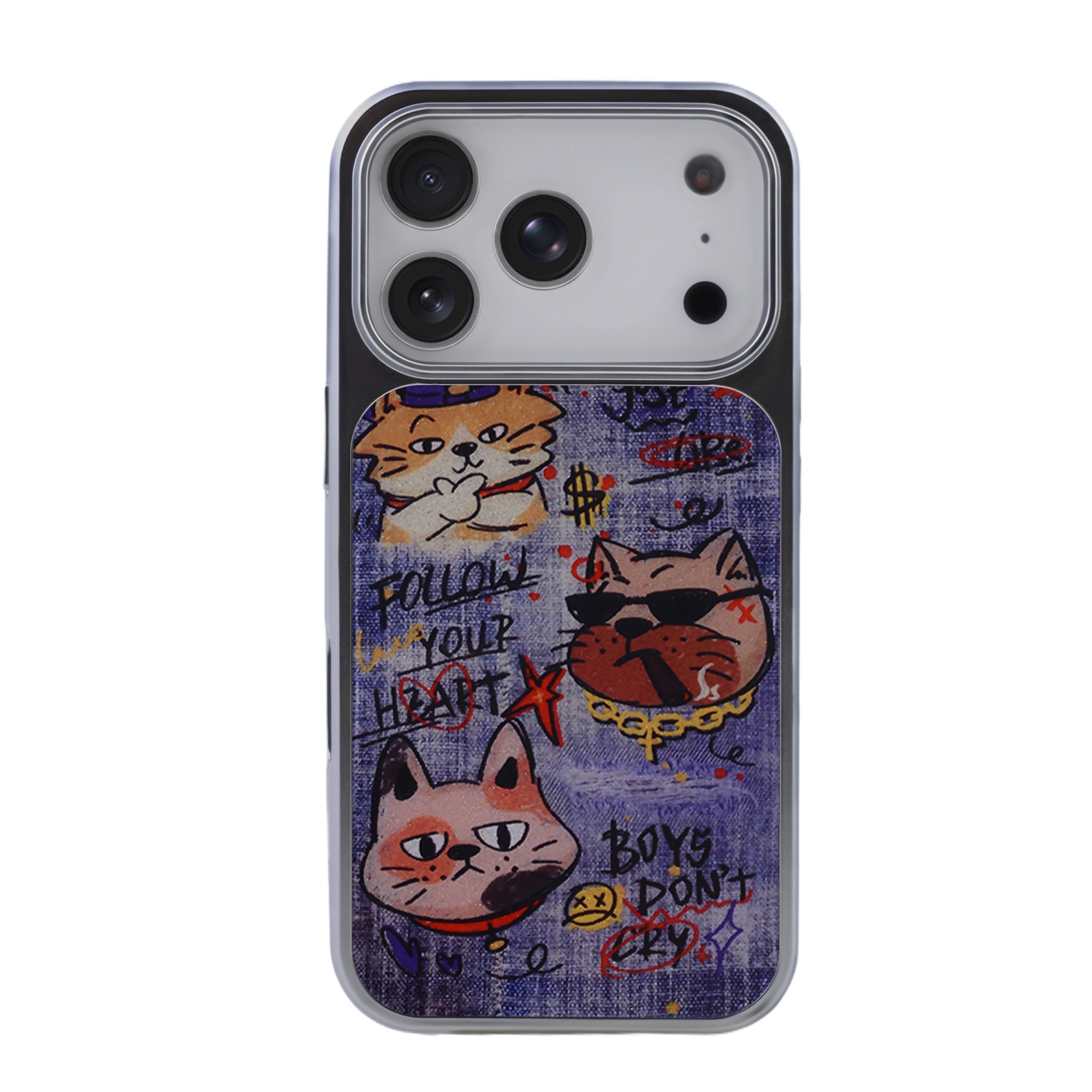 Denim Style Graffiti Cat Magnetic Case for iPhone 17 Pro Max - Electroplated Frame Protective Phone Cover