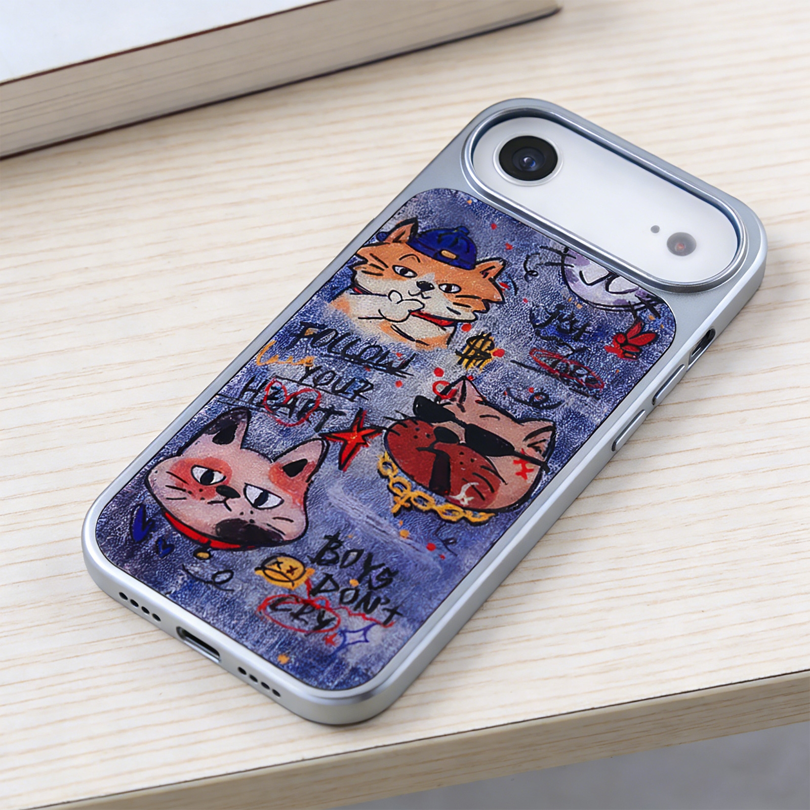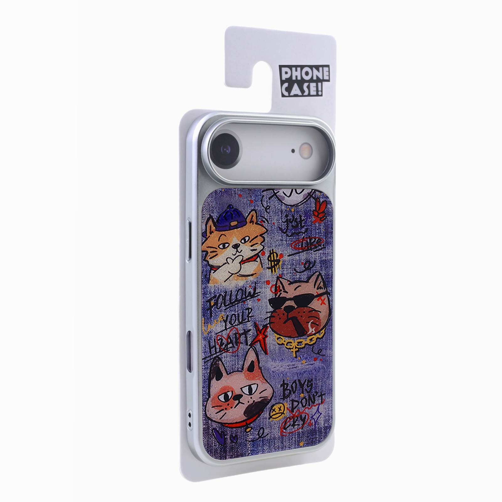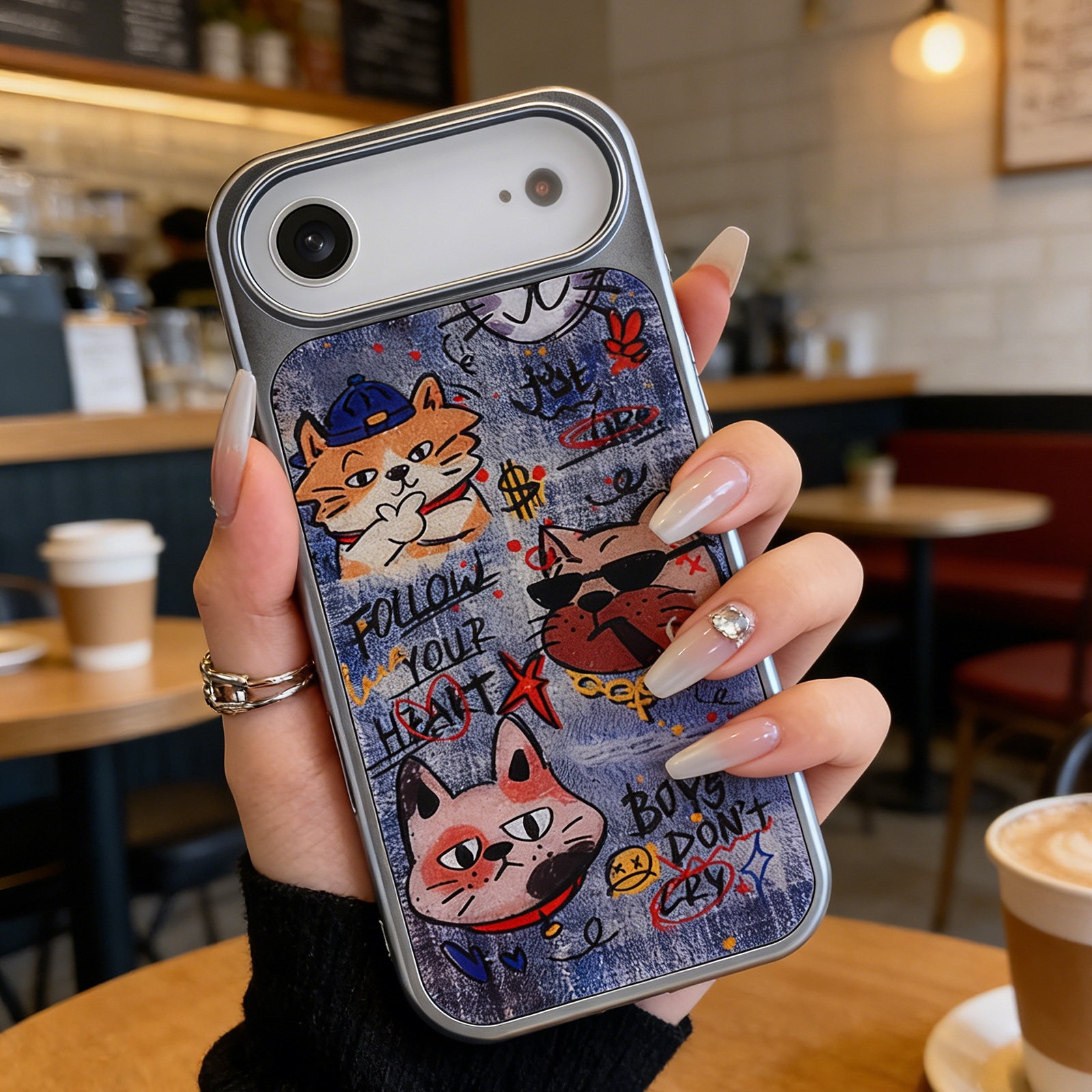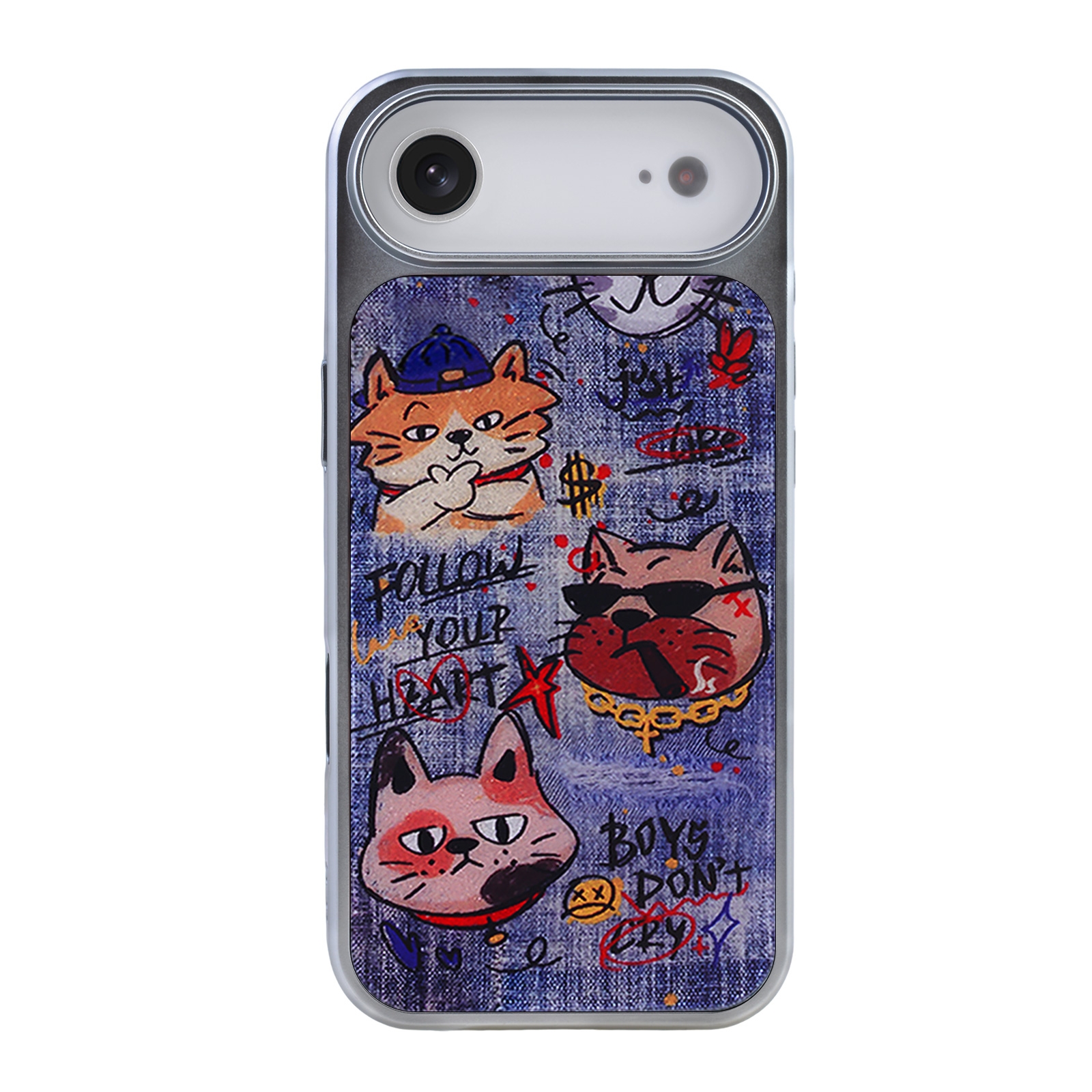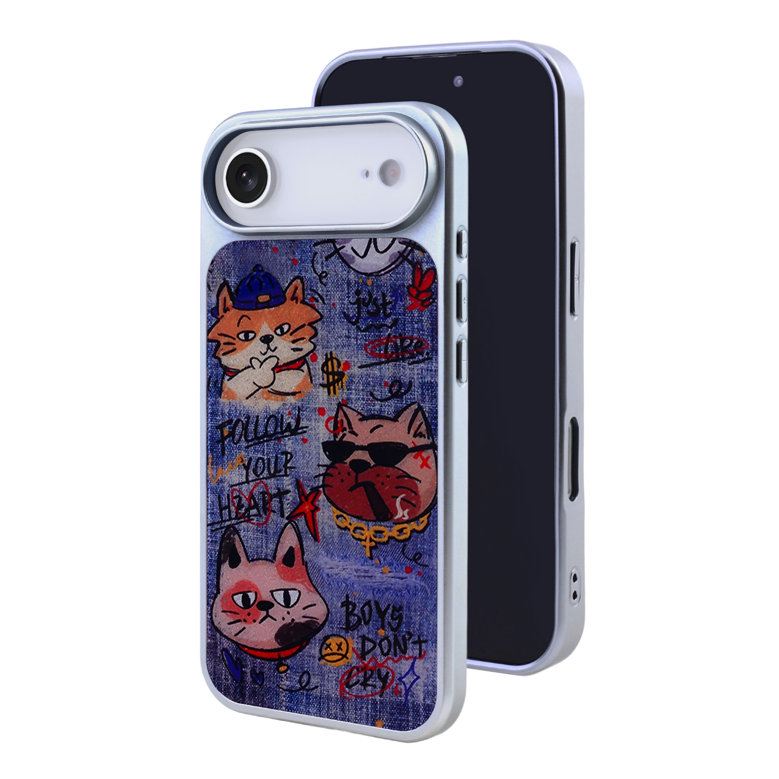 Denim Style Graffiti Cat Magnetic Case for iPhone Air - Electroplated Frame Protective Phone Cover
