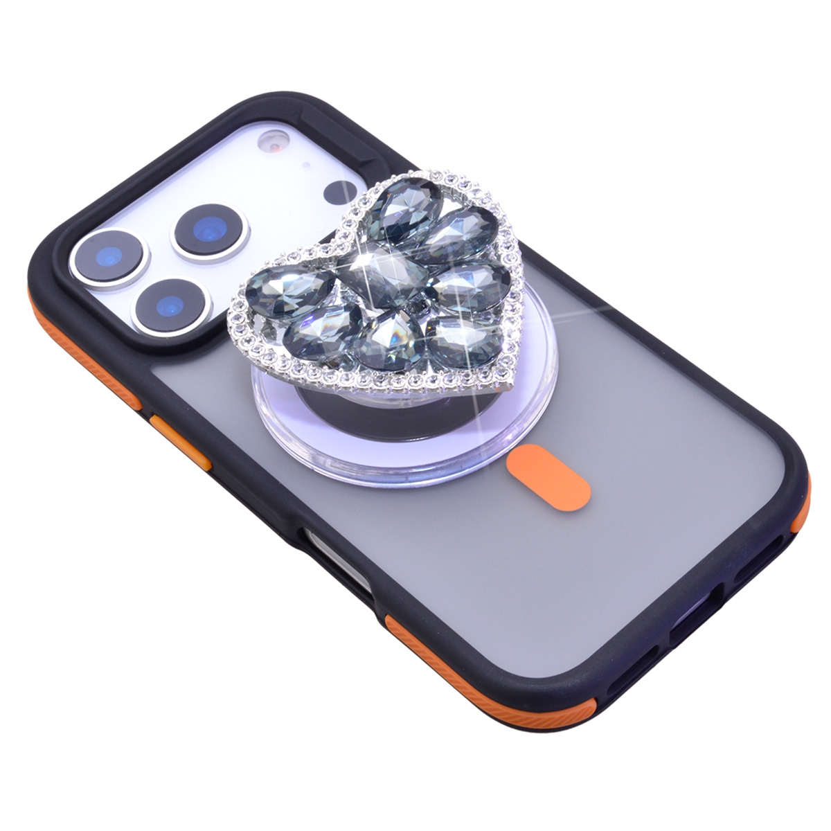 Diamond Phone Holder, Heart Shape Magnetic Stand Black