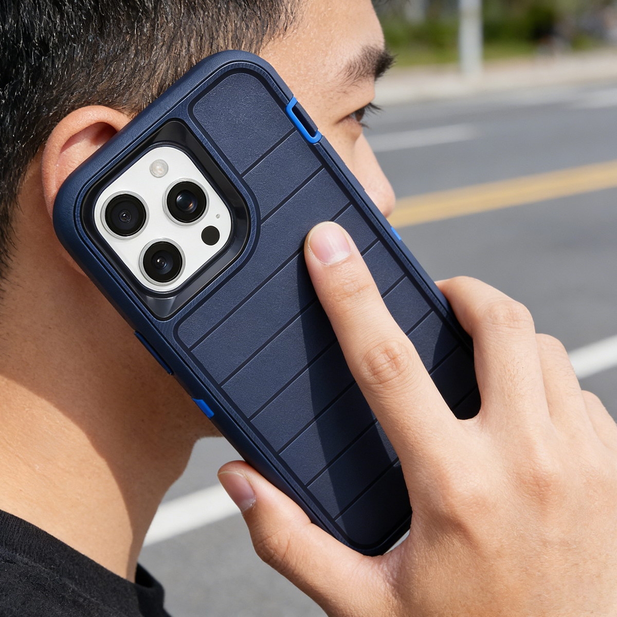 - 3-Layer Interlocking Structure: It consists of a solid inner polycarbonate (PC) frame that encases the phone, surrounded by a flexible outer rubber shell to absorb impact.
