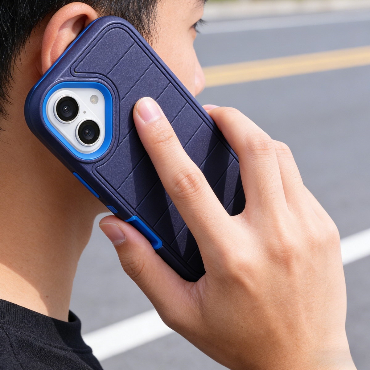 - 3-Layer Interlocking Structure: It consists of a solid inner polycarbonate (PC) frame that encases the phone, surrounded by a flexible outer rubber shell to absorb impact.