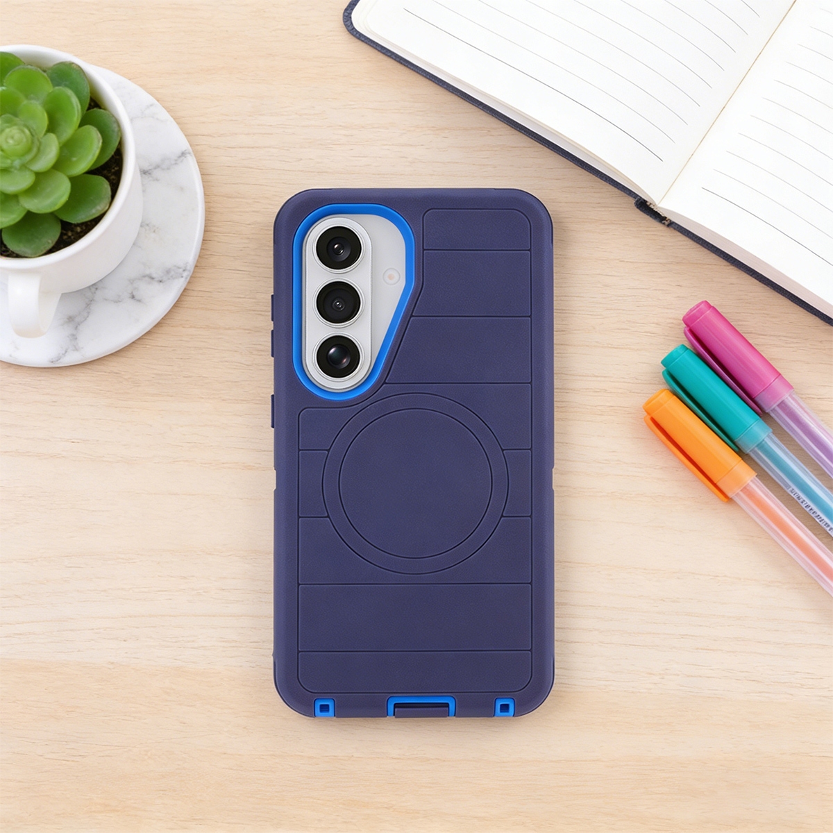 Magnetic Phone Case with 360° Rotating Stand for S26, Dark Blue
