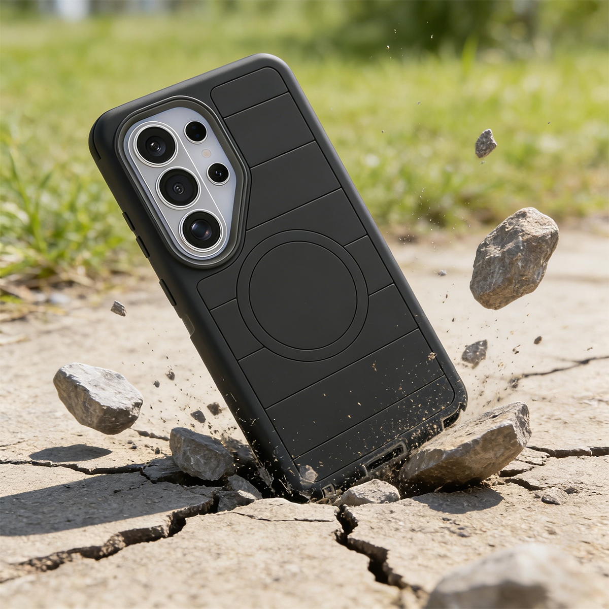 - 3-Layer Interlocking Structure: It consists of a solid inner polycarbonate (PC) frame that encases the phone, surrounded by a flexible outer rubber shell to absorb impact.