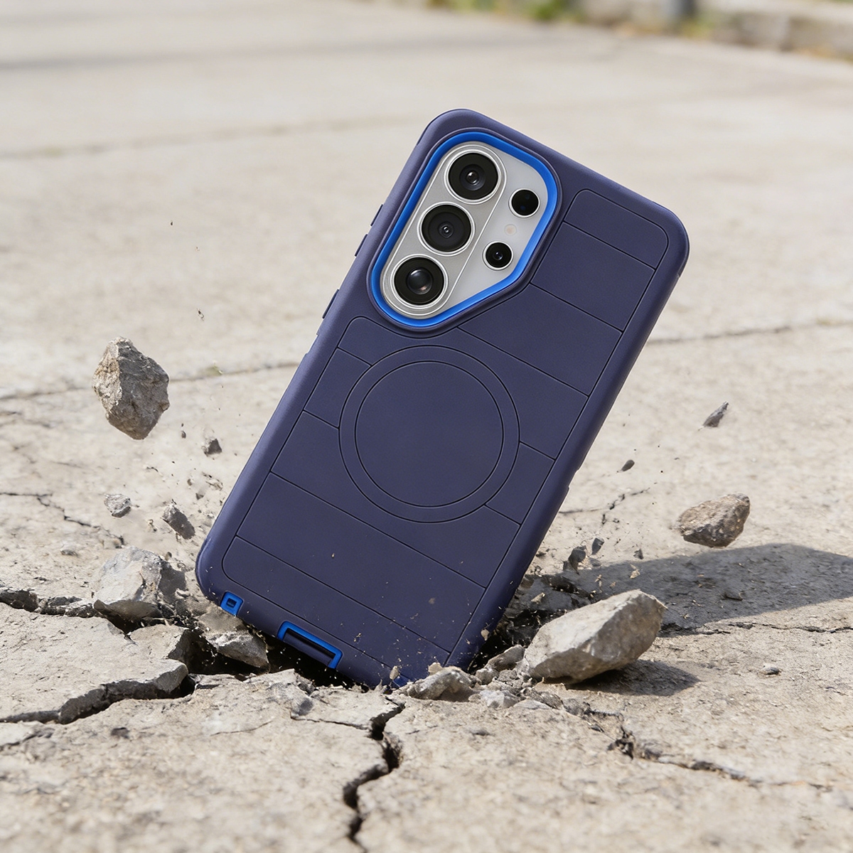 Rugged Magnetic Case with Foldable Kickstand & Wrist Strap for S26 Ultra, Blue
