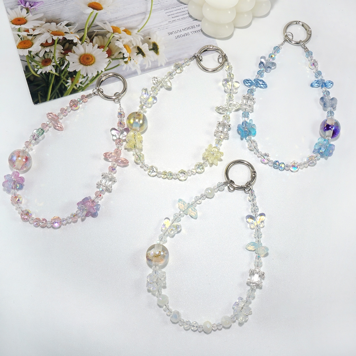 Elegant Butterfly Flower Artificial Crystal Phone Wrist Strap, White