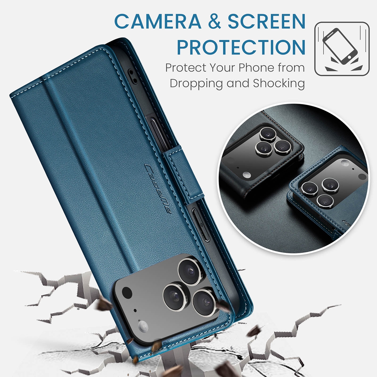 Flip Phone Case for iPhone 17 Pro Max with Butterfly Buckle - RFID Blocking Anti, Blue